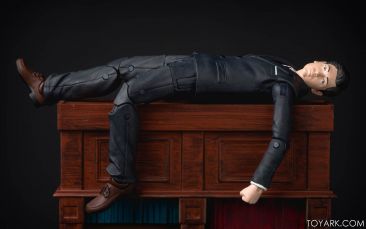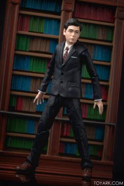 Of note in this line, and with these 3 figures – the diorama pieces. Zsasz gets a city street and the dumpster that was originally shown off with Bullock. Bruce gets a bookcase to go with Alfred’s fireplace. And Barbra gets a huge Arkham Asylum entrance way. Those pieces, especially the Arkham piece, are fantastically done and add value to the pick up. They can be re-purposed and used in displays regardless if the figure gets top billing on your shelves. They are great, I hope DST keeps up with that angle in future releases.