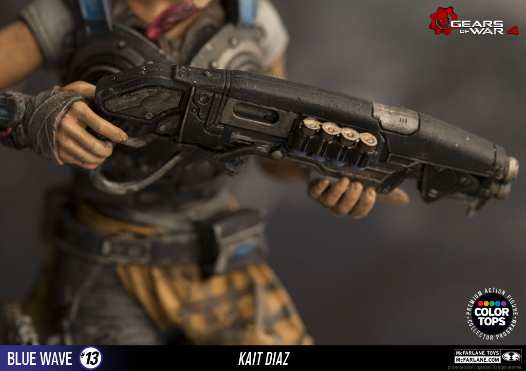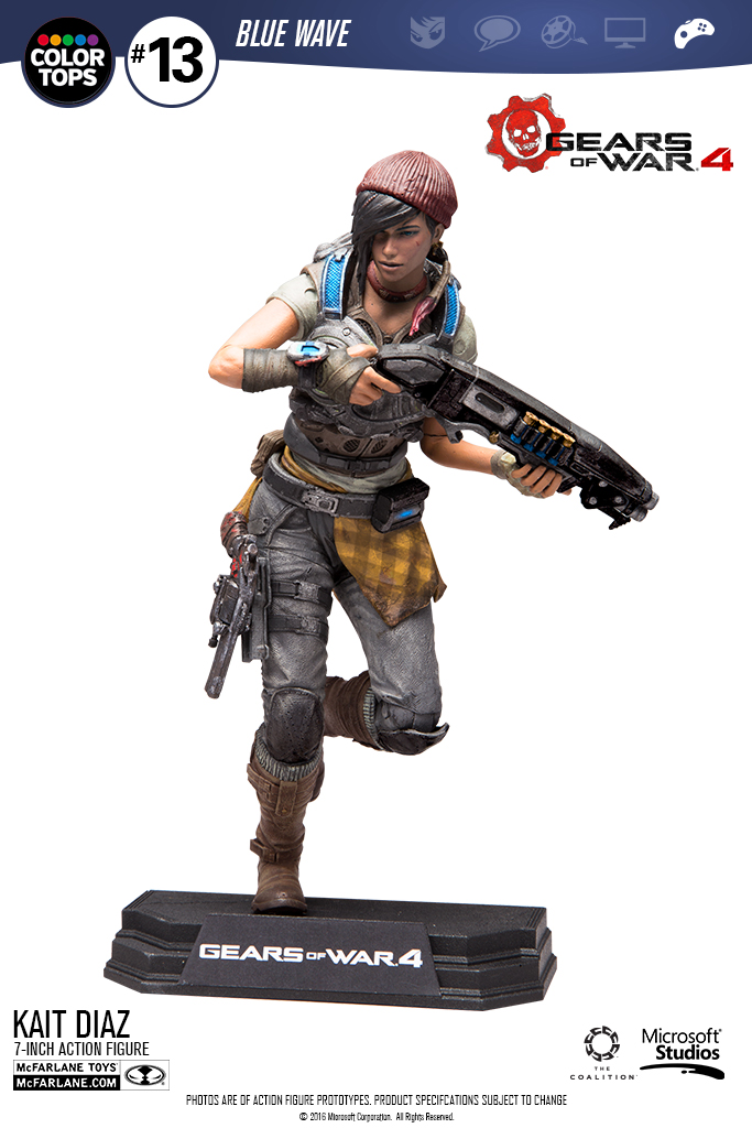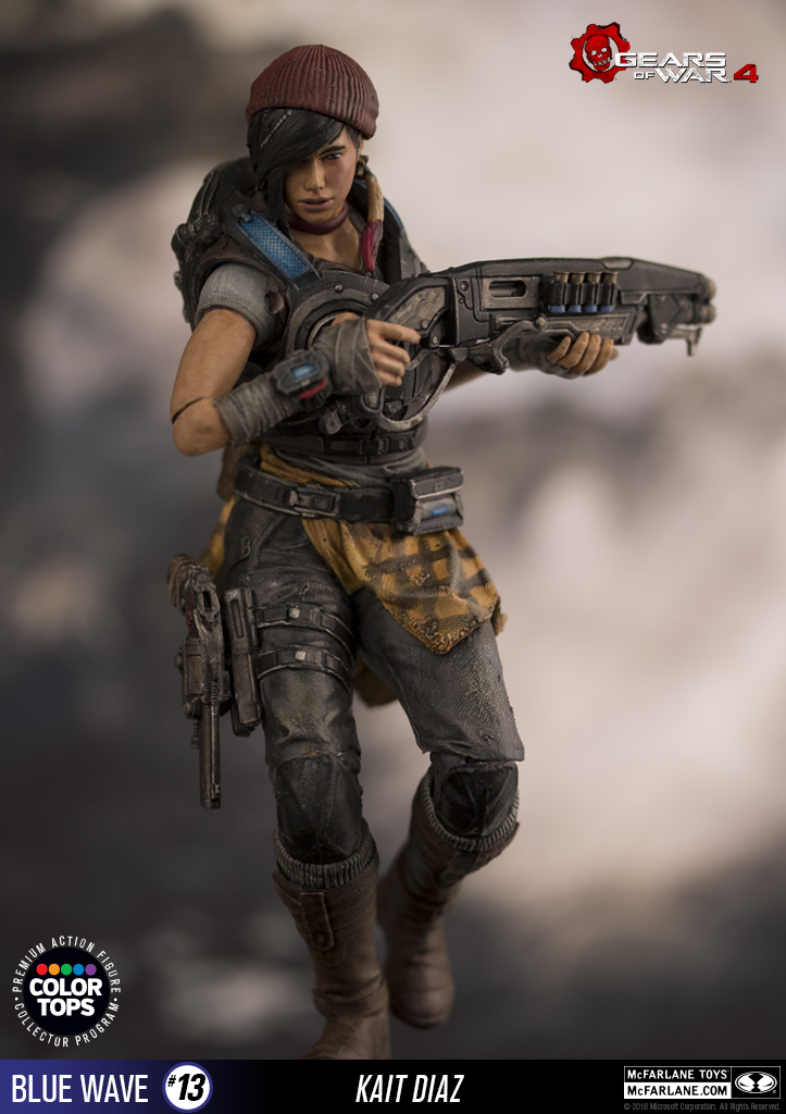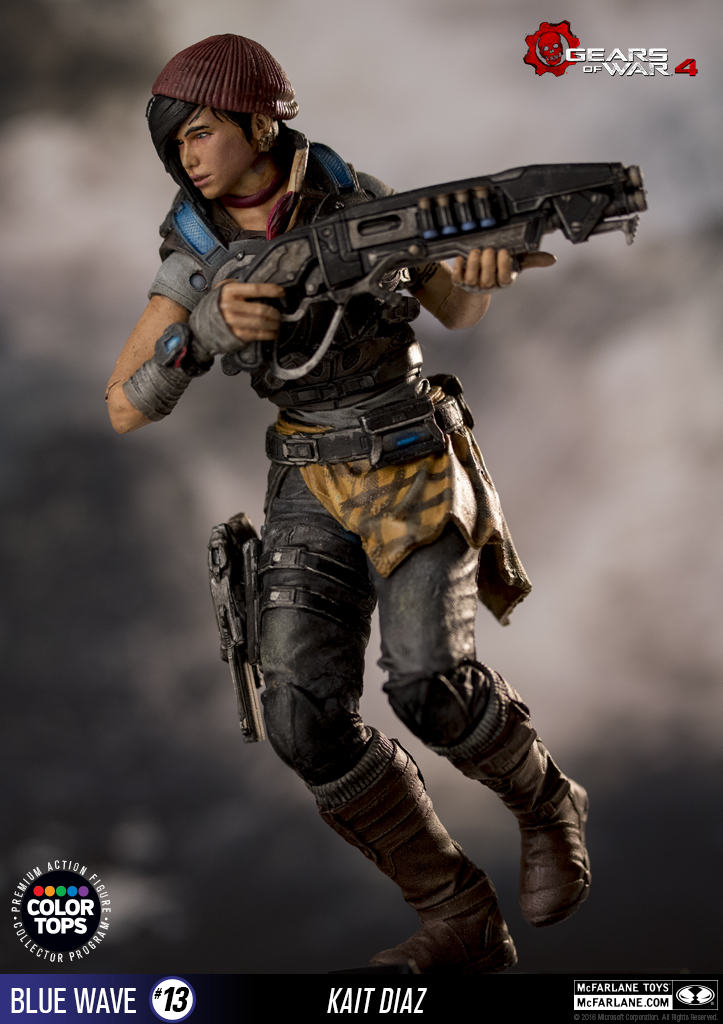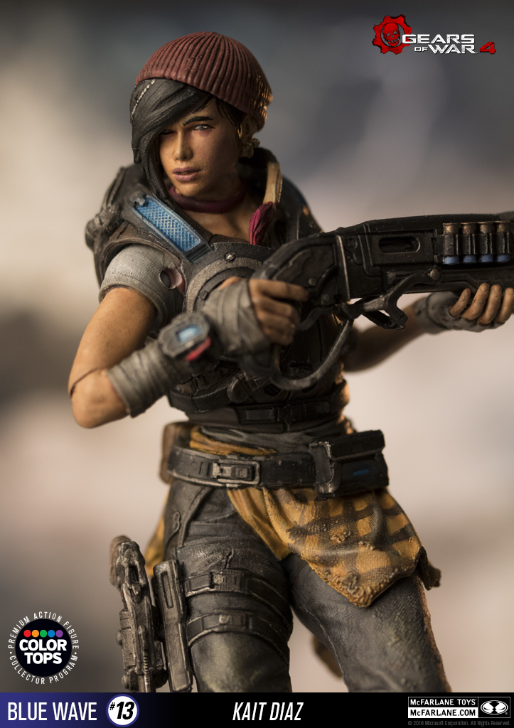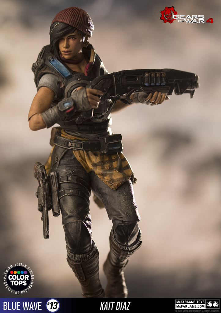 McFarlane Toys has released official final product images for their upcoming Gears of War 4 Kait Diaz 7″ Scale Figure. The figure is part of McFarlane’s Color Tops Collection in the Blue Wave.