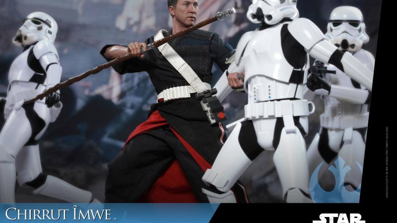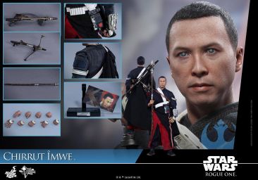 Just a few weeks ago, we got our first look at a few new Rogue One: A Star Wars Story 1/6 Scale Figures. This included the first full look at the Chirrut Îmwe Figure. Hot Toys has now released official photos and details for the upcoming Chirrut Îmwe 1/6 Scale Figure. The new figure features the likeness of actor Donnie Yen. It stands at 11.4″ tall and will have over 30 points of articulation. The figure will include interchangeable hands, a mechanical staff, a crossbow and a figure stand. There will also be a Deluxe Edition, which will include a diorama figure base, a (non-wearable) Stormtrooper helmet, and alternate packaging based on traditional Asian art.
