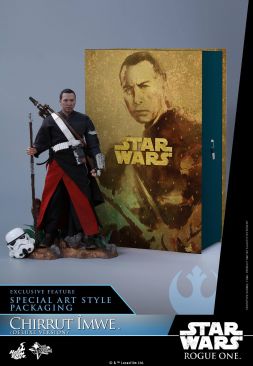 Furthermore, in celebration of the famed Hong Kong actor and martial artist Donnie Yen starring as the spiritual warrior Chirrut, Hot Toys is excited to present a special Deluxe version of the 1/6th scale Chirrut Îmwe only available in selected markets. This Deluxe Version will exclusively include a diorama figure base with a Stormtrooper helmet and a special package design inspired by traditional Asian art!