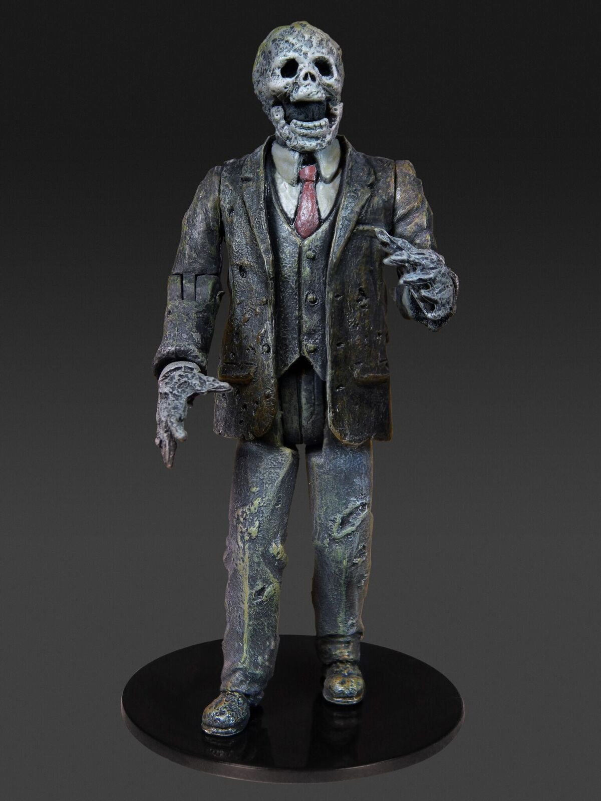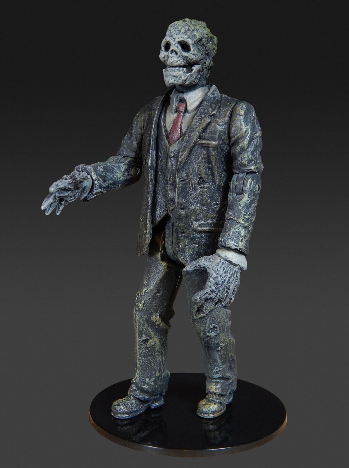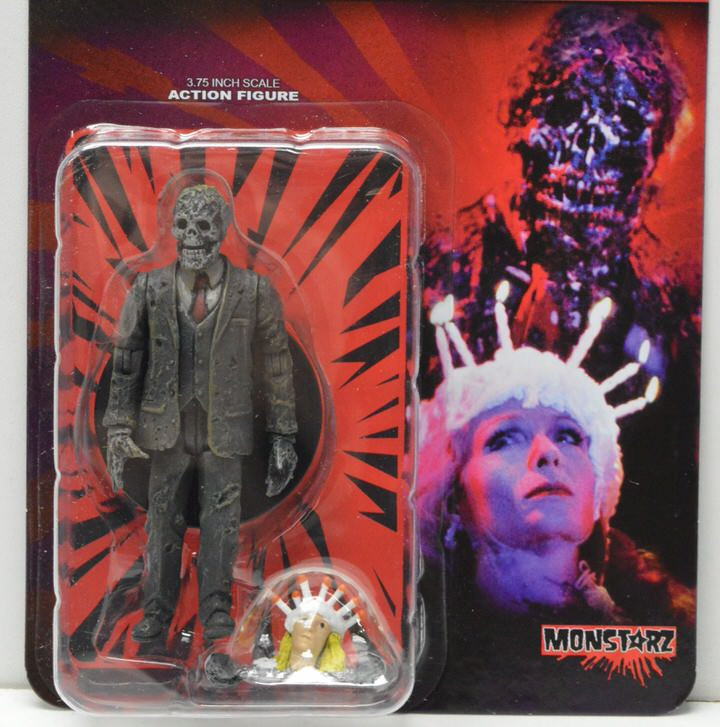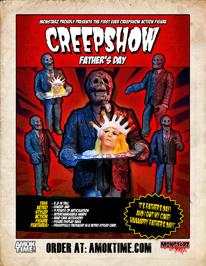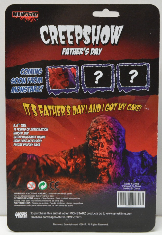 A new retro style horror figure has been revealed by Amok Time. The new figure, part of their exclusive Monstarz line up, is based on the cult classic anthology horror film Creepshow. It gives fans a Nathan Grantham zombie figure from Creepshow’s “Father’s Day” story. The 3.8″ tall figure will have 9 points of articulation, including a hinged lower jaw. It will include interchangeable hands, a head cake accessory and a figure display stand. It looks like more Creepshow figures are on their way as well. A Crate Monster from the tale “The Crate” is also shown on the card art.