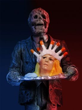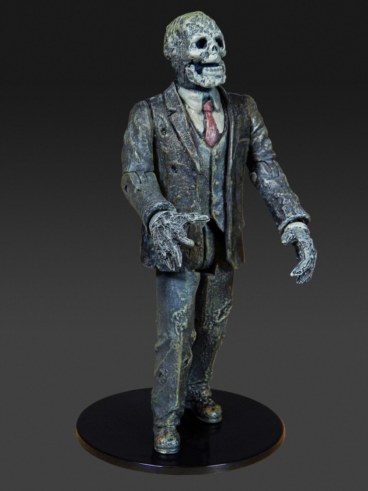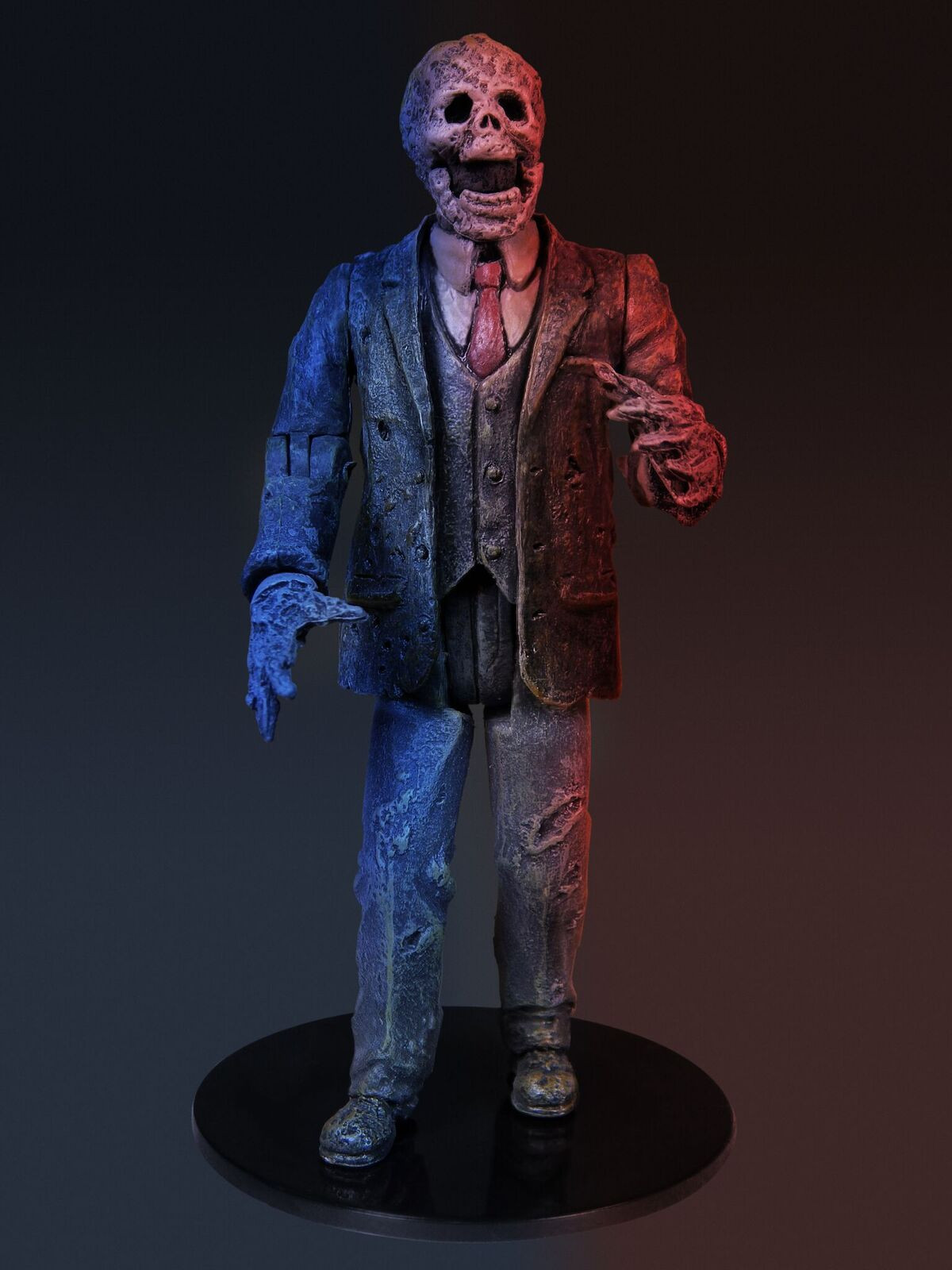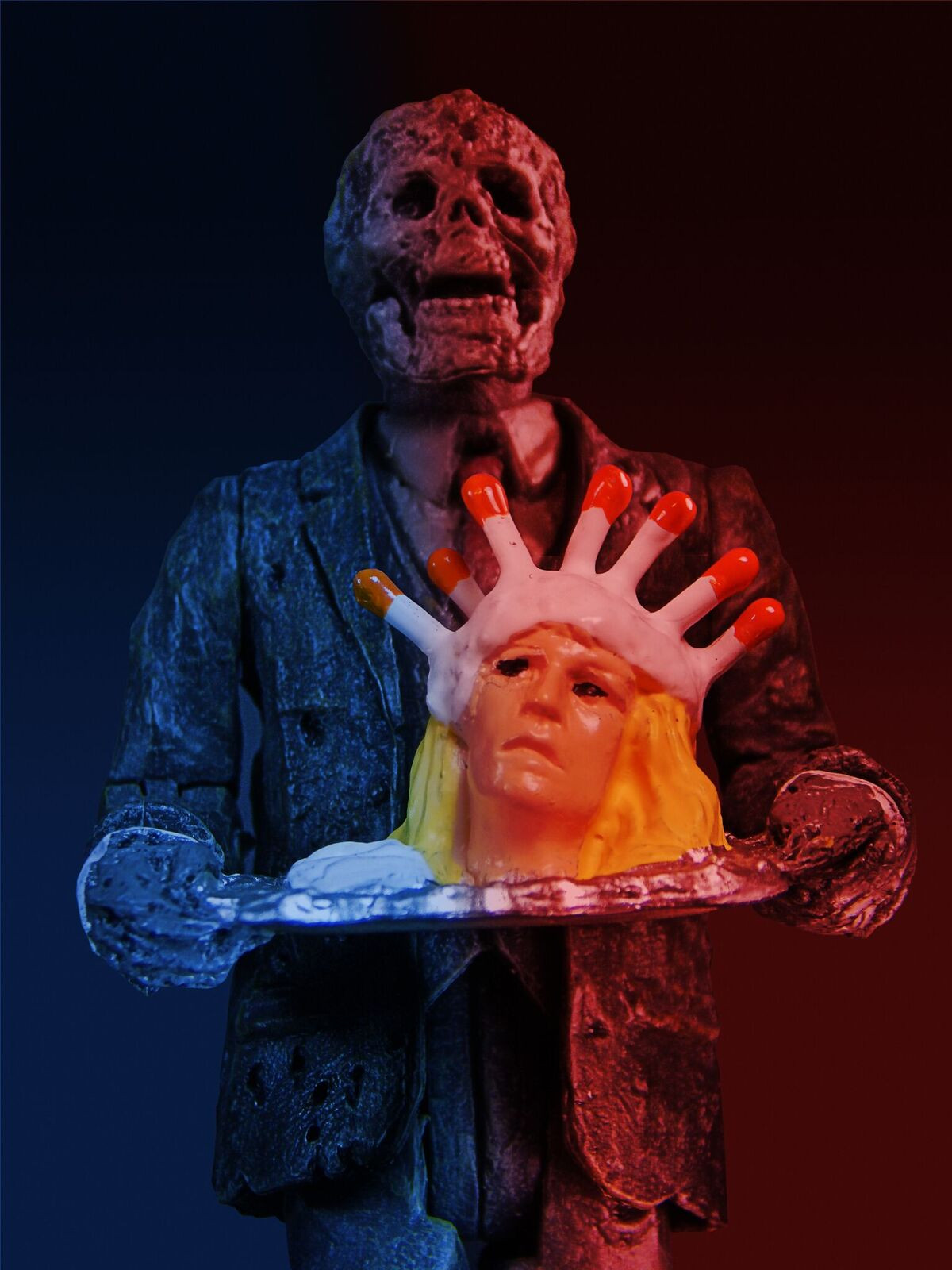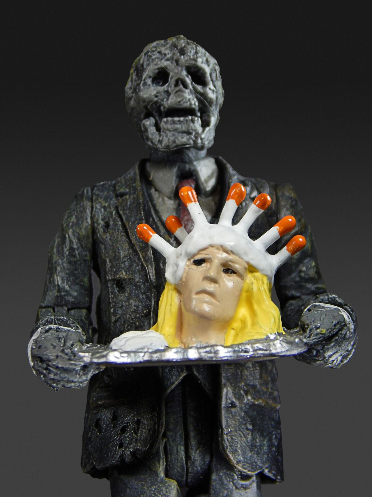 A new retro style horror figure has been revealed by Amok Time. The new figure, part of their exclusive Monstarz line up, is based on the cult classic anthology horror film Creepshow. It gives fans a Nathan Grantham zombie figure from Creepshow’s “Father’s Day” story. The 3.8″ tall figure will have 9 points of articulation, including a hinged lower jaw. It will include interchangeable hands, a head cake accessory and a figure display stand. It looks like more Creepshow figures are on their way as well. A Crate Monster from the tale “The Crate” is also shown on the card art.