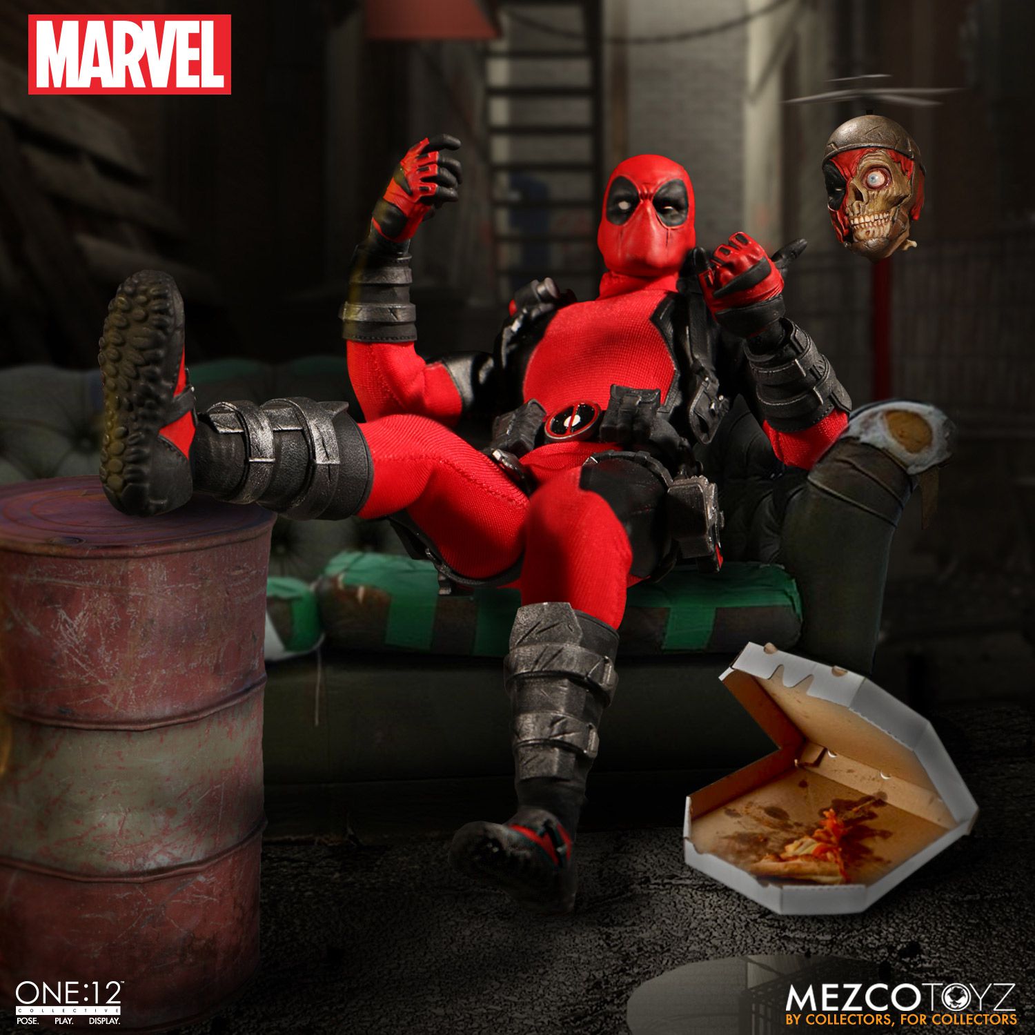 Wade Winston Wilson, known to the world as Deadpool, is a disfigured and mentally unstable mercenary with the superhuman ability of an accelerated healing factor and physical prowess. The “Merc with a Mouth” joins the One:12 Collective with a comprehensively detailed outfit and portrait sculptures.