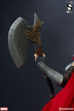 The Sideshow Exclusive variant features an alternative swap-out left arm and hand holding Jarnbjorn, the Dwarven forged Battle Axe of Thor.