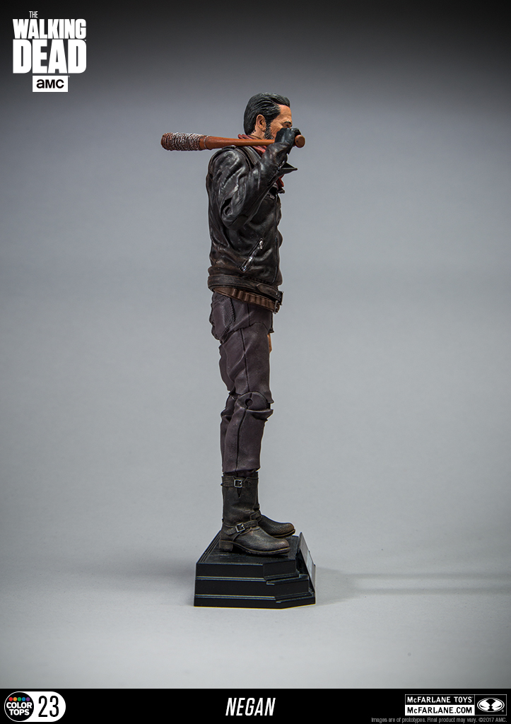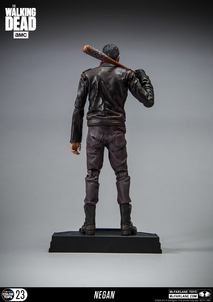 Some new official photos of the upcoming The Walking Dead TV Series – Negan 7″ Scale Figure have been released by McFarlane Toys. The updated photos give us a look at the fully painted and finalized figure. Negan, part of McFarlane’s Color Tops collection, is scheduled for release in August. The figure will be priced at $19.99.