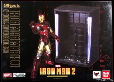 Tamashii Nations along with Bluefin are finally releasing Marvel S.H. Figuarts in the United States. In order to differentiate themselves from existing license holders (we assume), each piece will be coming with larger extras, environment pieces and the like. The first of these is the Iron Man 2 Mark 6 suit with a Hall of Armor display. This was originally a Tamashii Web exclusive in Japan, and the figure itself has been significantly redone since it’s first release (see here). It will be dropping soon in the States at roughly 120 USD. We’ve got our copy in hand so read on to check out over 60 HD images and some quick thoughts!