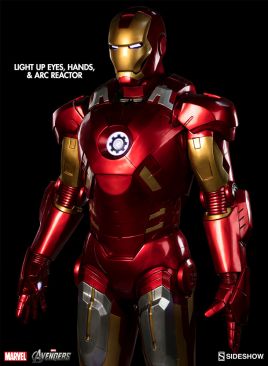 Sideshow Collectibles has posted an update for their upcoming Life Size Iron Man Mark VII Armor. This massive collectible statue has multiple LED light up features, including the base. Pre-orders start tomorrow. Here’s more info from Sideshow, and read on for the new photos.