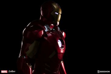 Inspired by the suit created in the first Avengers movie, this finely crafted museum-quality suit of armor raises the bar for screen accuracy and detail.   Illuminated from below by its light-up character base, the light glinting from its distinctive red, gold and silver armored shell, the Mark VII is an eye-catching and visually stunning suit of armor worthy of an Avenger.