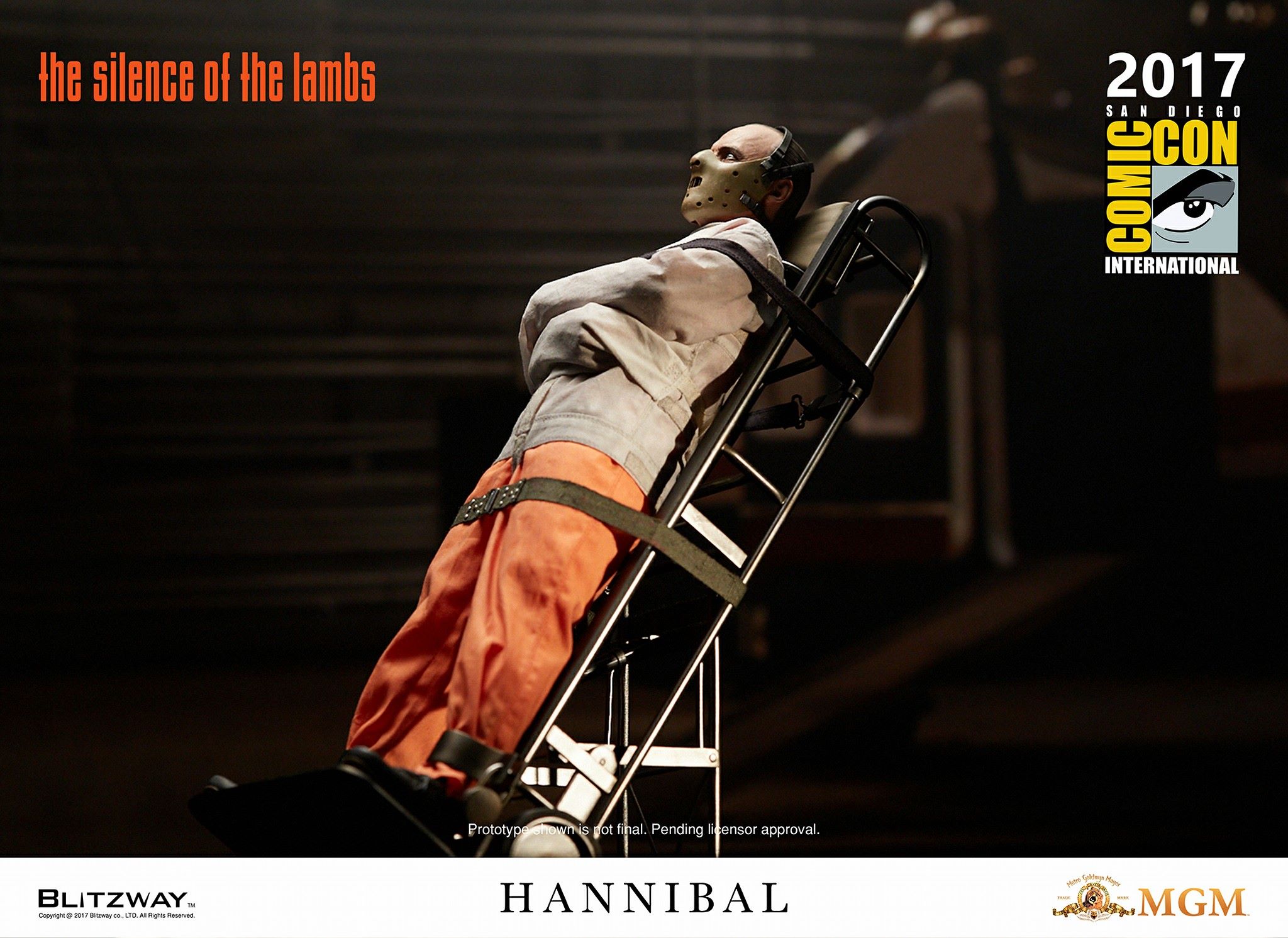 Blitzway revealed their Silence of the Lambs – Dr. Hannibal Lecter Statues at San Diego Comic-Con 2017. At the event, we saw three versions of the statue. Two in his asylum prison outfit, with one seated and one standing. the third was Dr. Lector strapped to a hand truck, complete with straight jacket and face mask. These 1/6 scale statue feature fabric outfits and extremely life-like details. Blitzway has released some new official photos of the statues.
