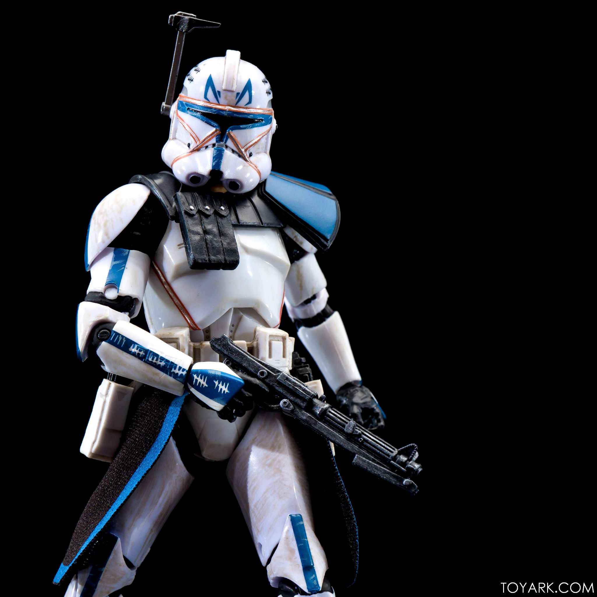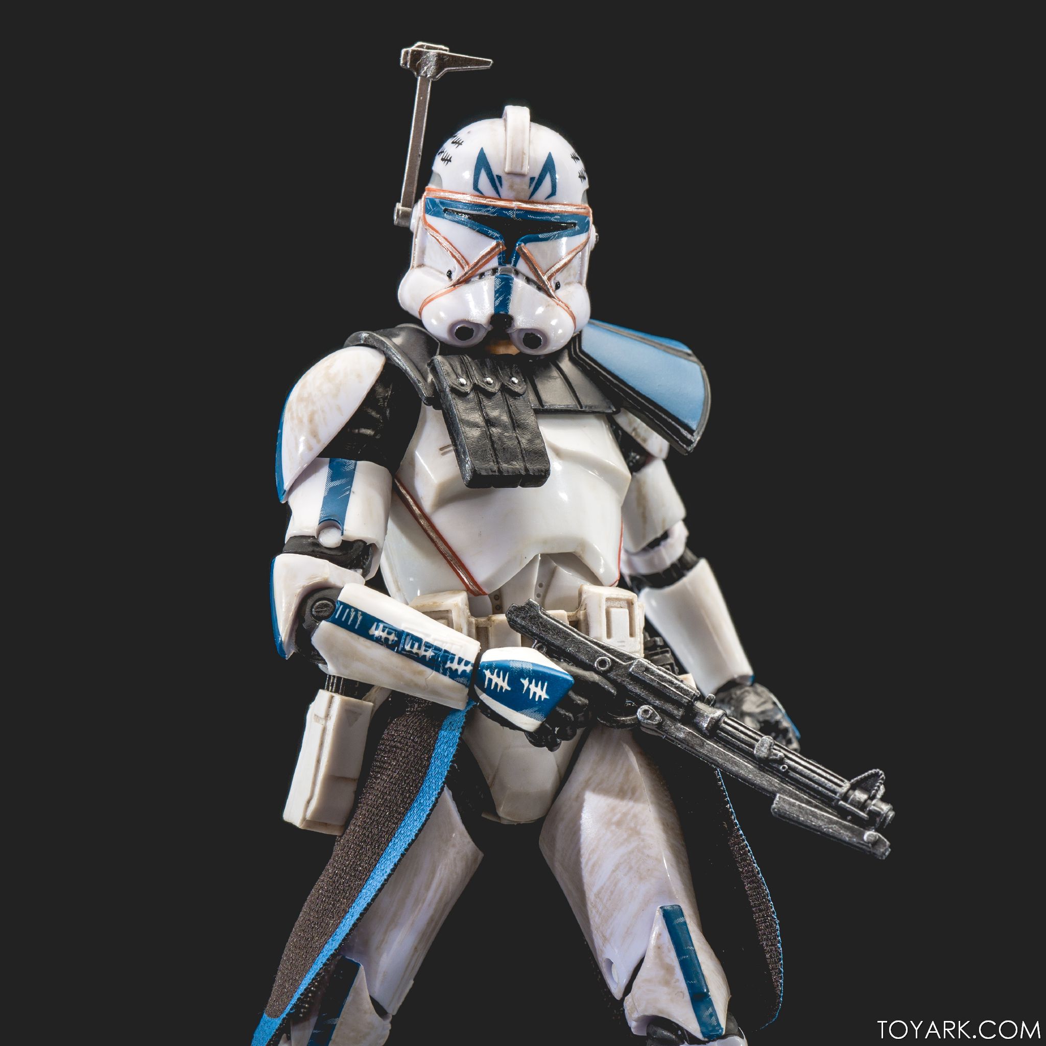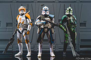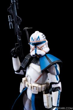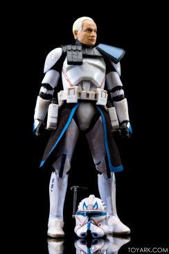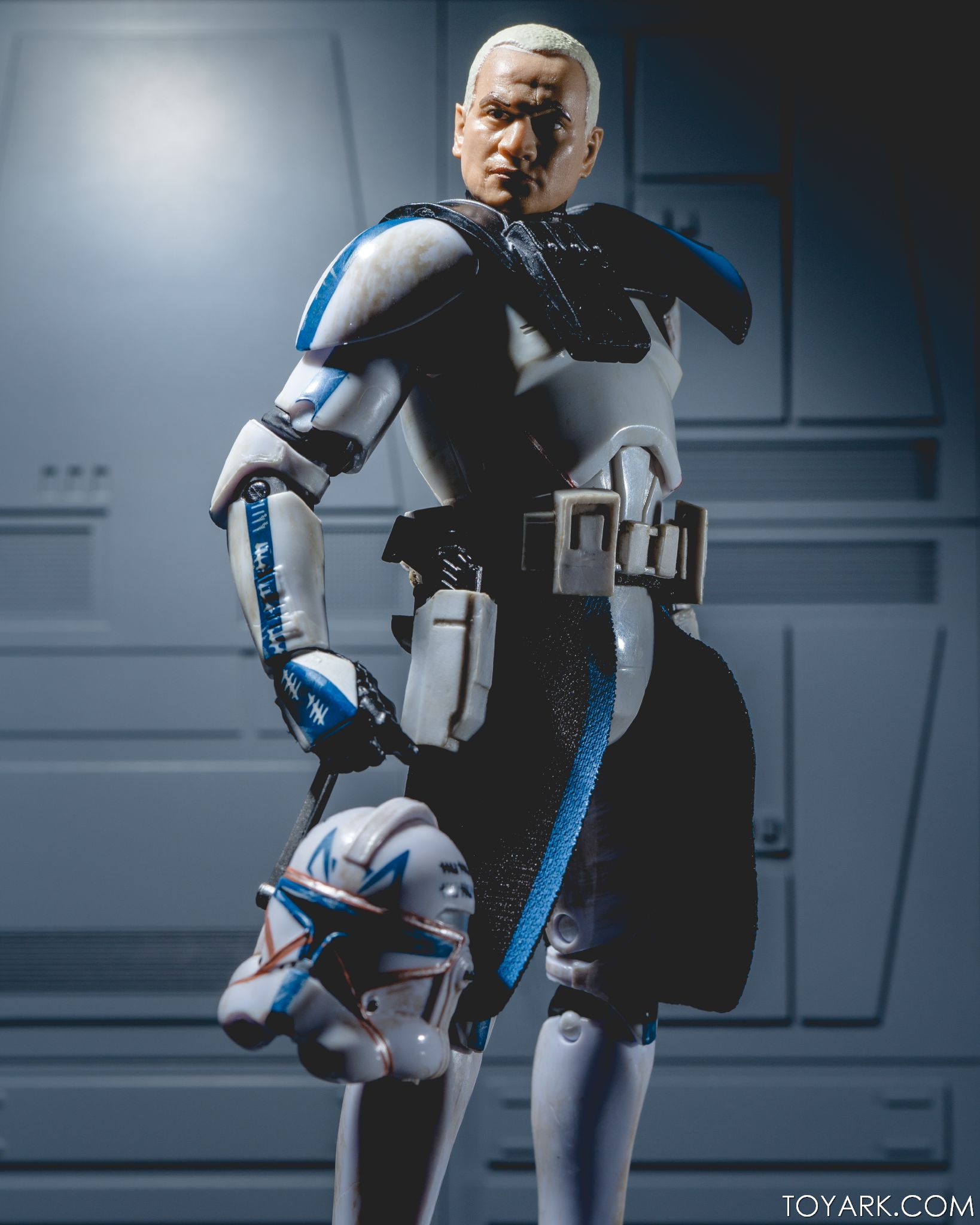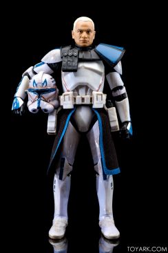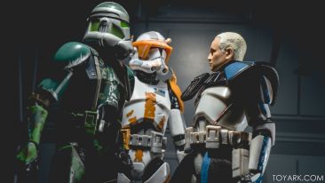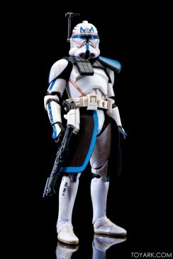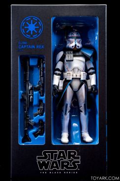 Captain Rex is in the building! The upper ranks of the clone army is filling out in Black Series with Captain Rex in his Phase 2 armor joining the ranks. This was a Hascon exclusive this past weekend, but he will be released later in standard packaging. He features a removable helmet, dual pistols and standard Clonetrooper rifle and blaster. The body has detailing and weathering to show combat wear, along with kill counts on his arms, legs and helmet. Unique parts include his shoulder pauldron, upper pouch and skirt. The face is sharply done in sculpt and paint and he’s rocking his famous platinum blonde hair. All in all it’s a really solid figure and the Hascon exclusive box is just icing on the cake. Read on to check out over 50 images of him in action!
