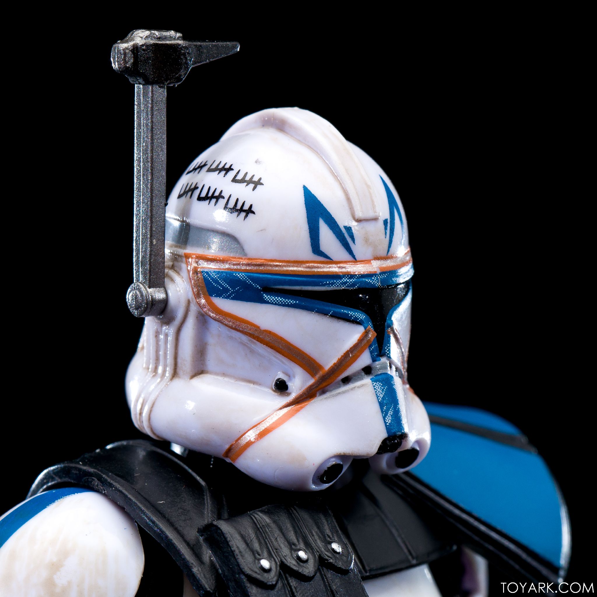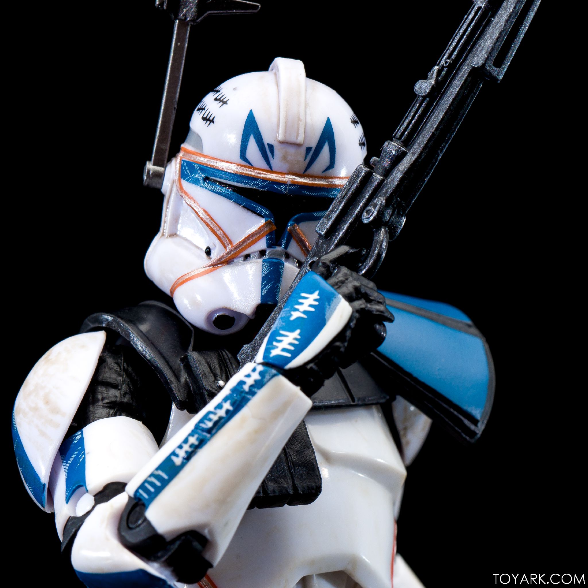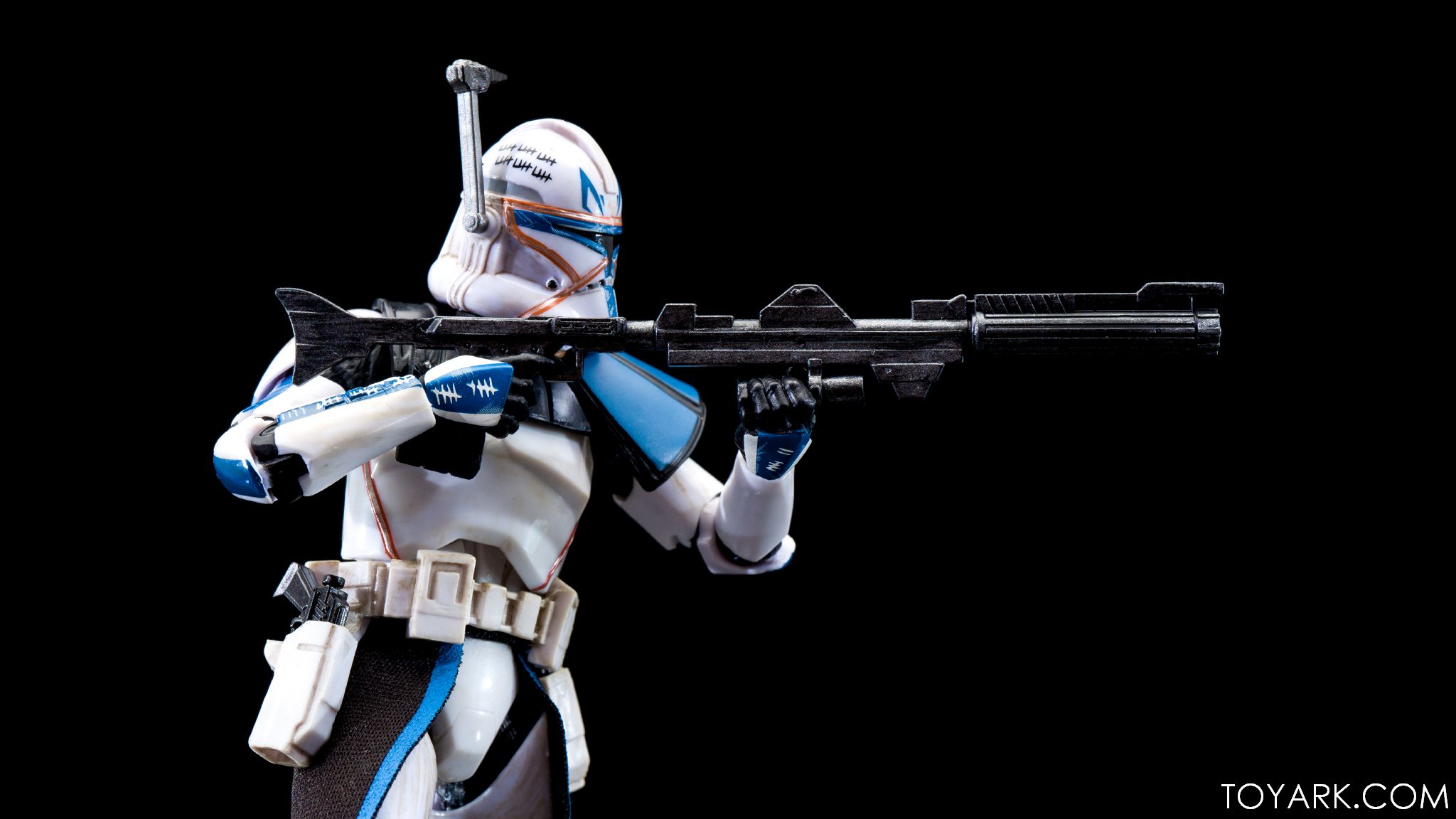 Captain Rex is in the building! The upper ranks of the clone army is filling out in Black Series with Captain Rex in his Phase 2 armor joining the ranks. This was a Hascon exclusive this past weekend, but he will be released later in standard packaging. He features a removable helmet, dual pistols and standard Clonetrooper rifle and blaster. The body has detailing and weathering to show combat wear, along with kill counts on his arms, legs and helmet. Unique parts include his shoulder pauldron, upper pouch and skirt. The face is sharply done in sculpt and paint and he’s rocking his famous platinum blonde hair. All in all it’s a really solid figure and the Hascon exclusive box is just icing on the cake. Read on to check out over 50 images of him in action!