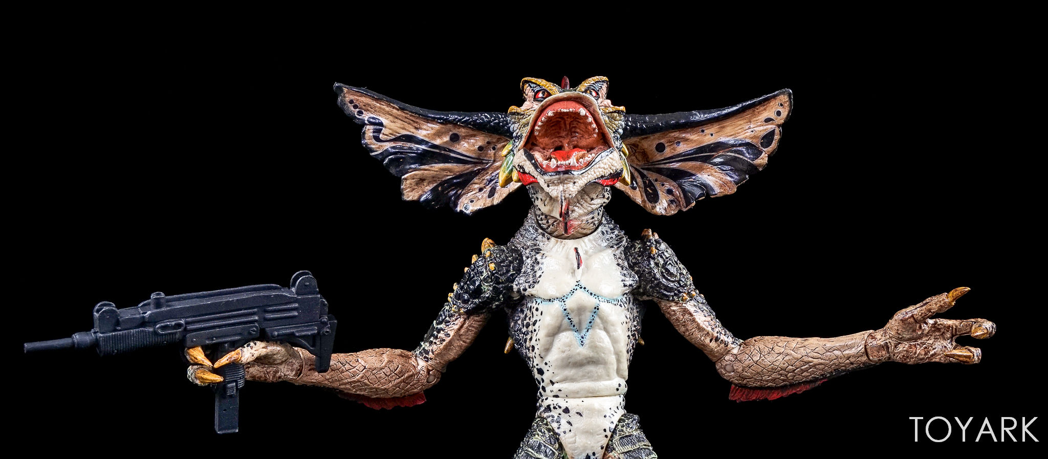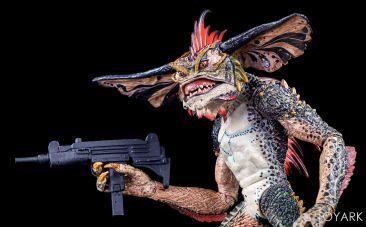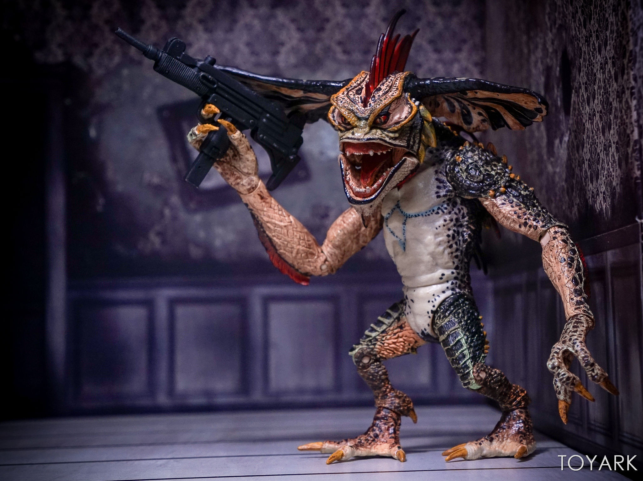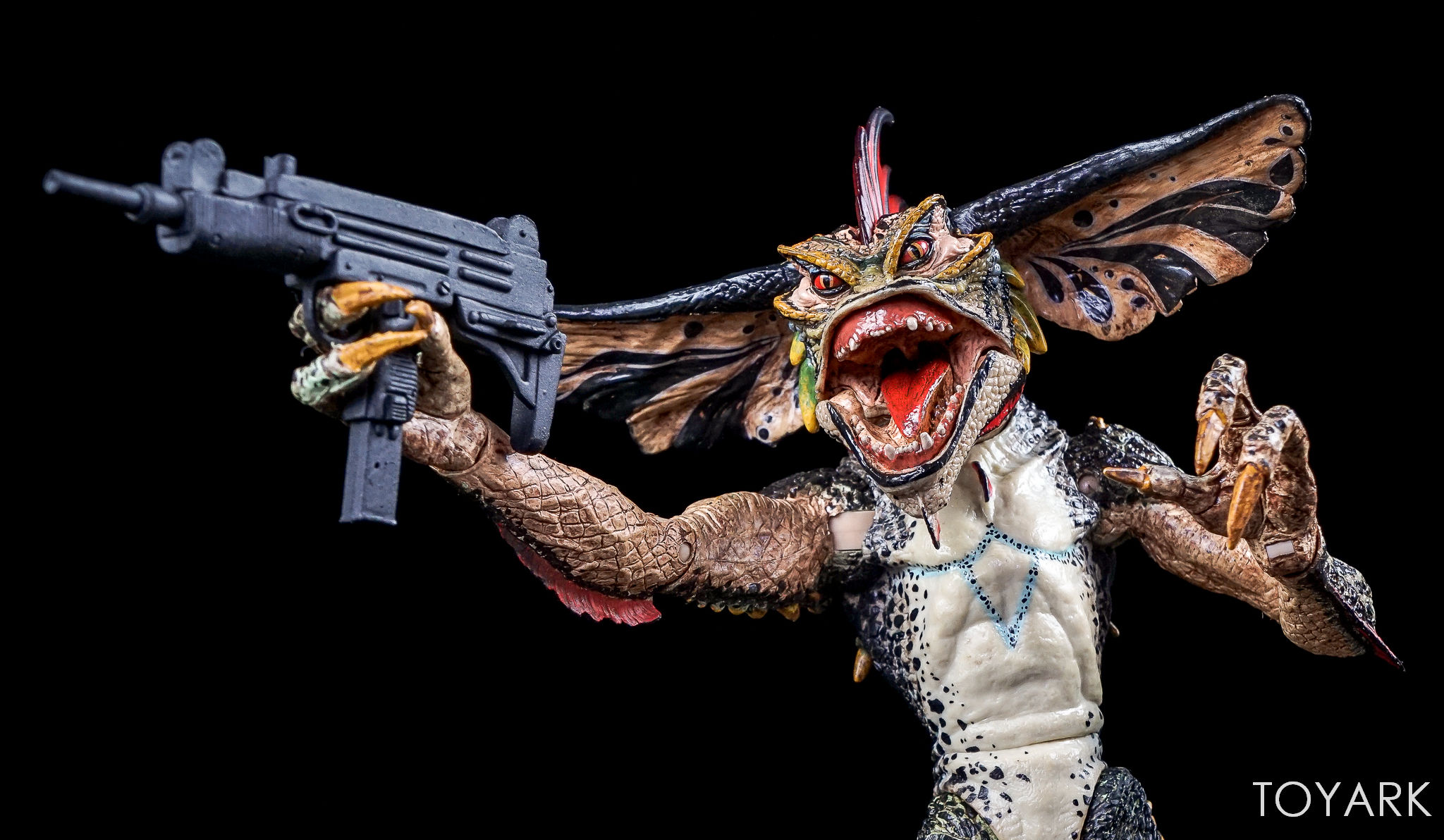 Way back at Toy Fair 2017, it was confirmed that the Gremlins 2: The New Batch – Mohawk Gremlin 7″ Scale Figure would be getting released this year by NECA Toys. The figure actually saw a release in their Video Game Appearance line back in 2015. Mohawk is the sinister leader of the new batch of Gremlins from the second film. In the movie he acts far more aggressive than the other Gremlins. Mohawk is defined by his red fish-like fin, which runs from his head down to his back. Later in the movie, Mohawk would ingest a spider serum, which would turn him into the fan favorite Spider Gremlin (previously released by NECA). The new figure stands over 6″ tall and includes an Uzi machine gun!