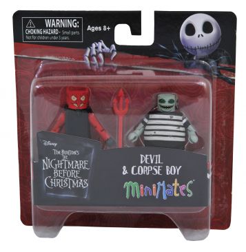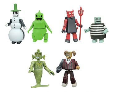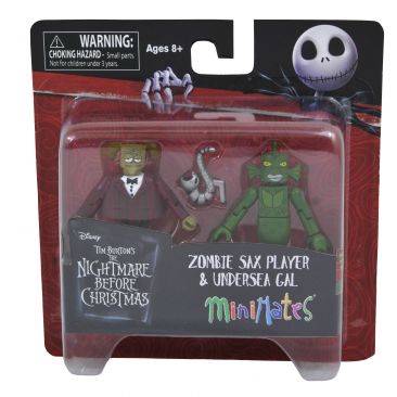 It’s a new series of Nightmare Before Christmas Minimates and they’re a dream come true! The cast of creepy characters expands with three new 2-packs: Snowman Jack with glow-in-the-dark Oogie Boogie, the specialty-exclusive Devil and Corpse Boy, and the also-exclusive Saxophonist with Undersea Gal! Each 2-inch Minimates mini-figure features up to 14 points of articulation with fully interchangeable parts, including a removable snowman costume! Each 2-pack comes packaged on a full-color blister card.