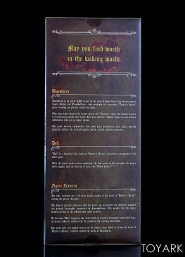 The Doll comes packaged in a large windowless box. The packaging features assorted design elements from the Bloodorne video game. There is information on Bloodborne, The Doll as well as the statue itself printed on one side of the box, while the opposite side includes nice details on the artists who brought the statue to life. The Doll sits inside a plastic clamshell tray. Minor assembly is required as you need to attach both The Doll and the lantern to the base. They both fit nicely in place and assemble within seconds of opening.