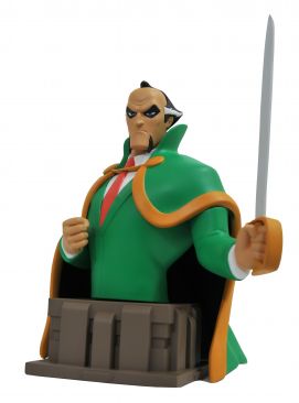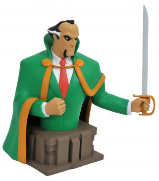 A Diamond Select Toys Release! The Demon’s Head has arrived! One of Batman’s oldest villains joins his rogues gallery as part of DST’s bust line based on Batman: The Animated Series! Featuring his distinctive appearance from the show, this approximately 6-inch resin bust of Ra’s Al Ghul is ready to pounce on a pedestal base inspired by the architecture of Gotham City. This bust is limited to only 3,000 pieces, and comes packaged in a hand-numbered, full-color box with a certificate of authenticity. Sculpted by Varner Studios!