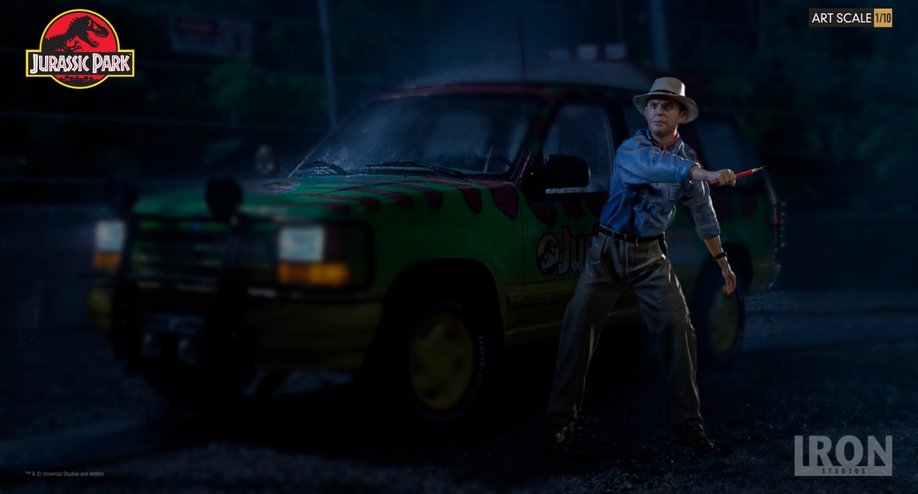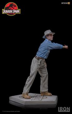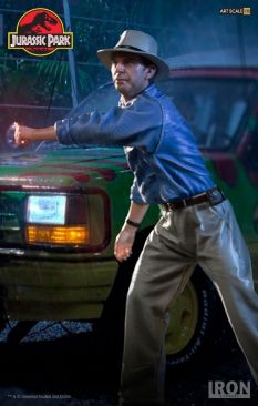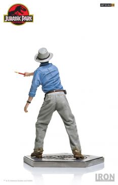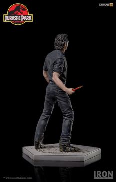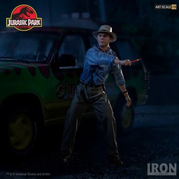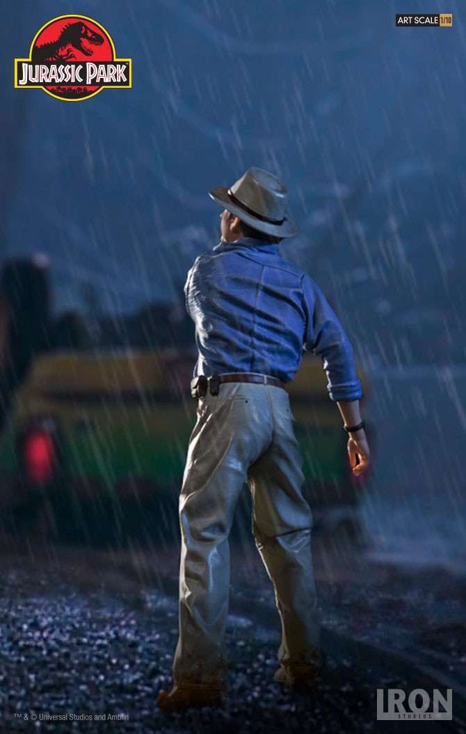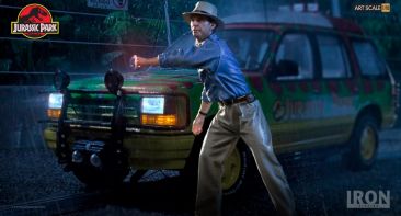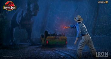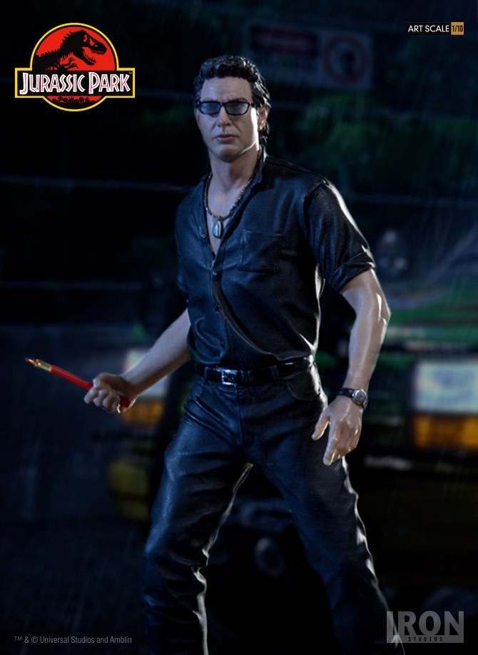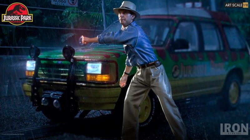 Chronicle Collectibles has announced that they will distribute two Iron Studios Jurassic Park Statues in North America and other select territories. Included are Dr. Alan Grant and Dr. Ian Malcolm. These will be 1/10 scale statues cast in polystone with a hand painted finish. The statues depcit the iconic scene where the T-Rex breaks free from his enclosure, with both Grant and Malcolm looking to distract the creature using road flares. Dr. Malcom will stand just over 8″ tall, while Dr. Grant will stand just over 7.4″ tall. Each of the characters stands atop a Jurassic Park logo base.