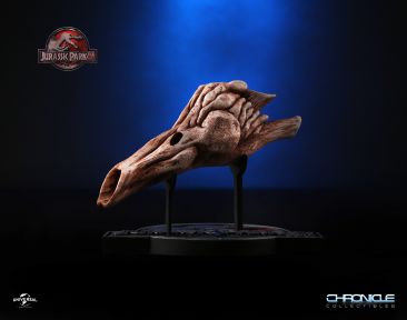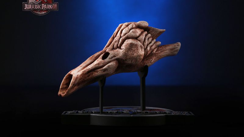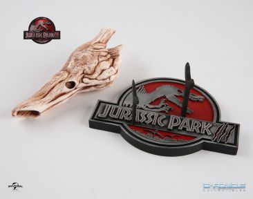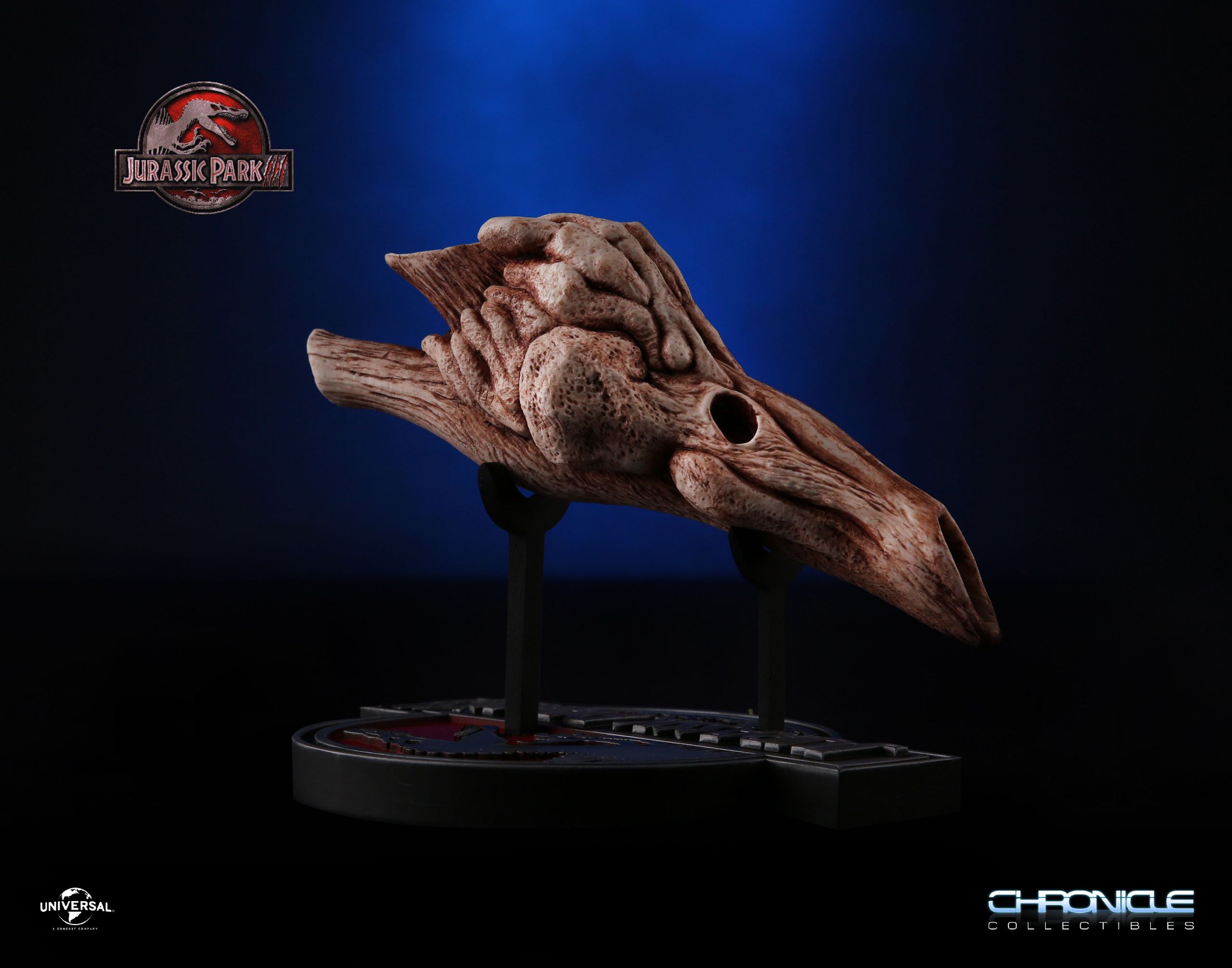 From Jurassic Park 3, comes the Velociraptor’s Resonating Chamber Replica by Chronicle Collectibles. In the film we are introduced to a 3D printed Resonating Chamber prototype, which comes from a Velociraptors skull and allows them to vocalize. Dr. Alan Grant uses the Resonating Chamber to drive off a pack of Raptors that are about to attack. Chronicle Collectibles will be releasing a prop replica of the Velociraptor’s Resonating Chamber! Their collectible is cast directly from the screen used prop, and is small enough for home or even office display. The replica will include a Jurassic Park 3 logo base and stand. It measures in at 6″ wide, 4.5″ deep and 5″ high. The Resonating Chamber is a static prop replica and dies not make the sounds heard in the film.