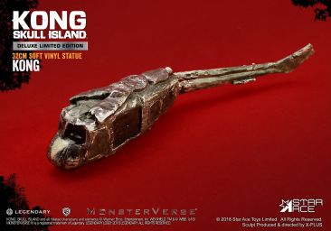 Star Ace Toys has shared a few preview photos of their upcoming Kong: Skull Island – Kong Soft Vinyl Statue. The statue will stand over 12.5″ tall. The preview includes the “Monsterverse” logo, indicating we may seem future statues from the Godzilla sequel as well (though not confirmed at this time). A Deluxe Edition will be available, featuring Kong standing atop a Skull Island themed base and holding a crushed helicopter in his hand.