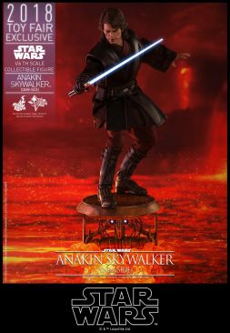A new version of the Star Wars: Episode III – Revenge of the Sith – Anakin Skywalker 1/6 Scale Figure has been revealed by Hot Toys. This updated version is based on the end of the film, after he has turned to the Dark Side and taken on the name of Darth Vader. The figure will be their Summer convention exclusive, and will be available at San Diego Comic-Con 2018 from the Sideshow Collectibles booth. Anakin includes multiple interchangeable hands, swap out robotics arm, a light up LED Lightsaber, a Lightsaber hilt, a Lightsaber blade in motion, and a Mustafar panning droid floating on lava diorama base. Check out official info below and read on for all the photos.
