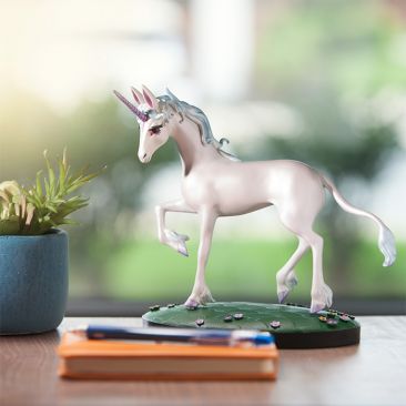 Put this on a bookcase or a desk to show off your magical personality. Sculpted by Kristina Lucas Francis, the unicorn can be displayed without the base if you so desire. The peg under her left front hoof will show, but nobody’s going to notice that. After all, they’re looking at the LAST unicorn, right?