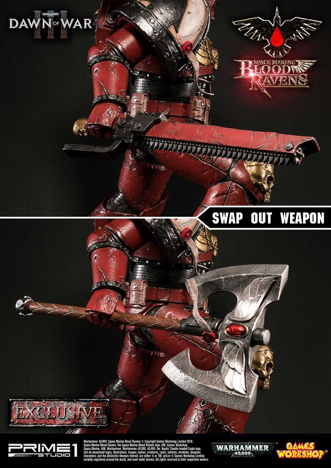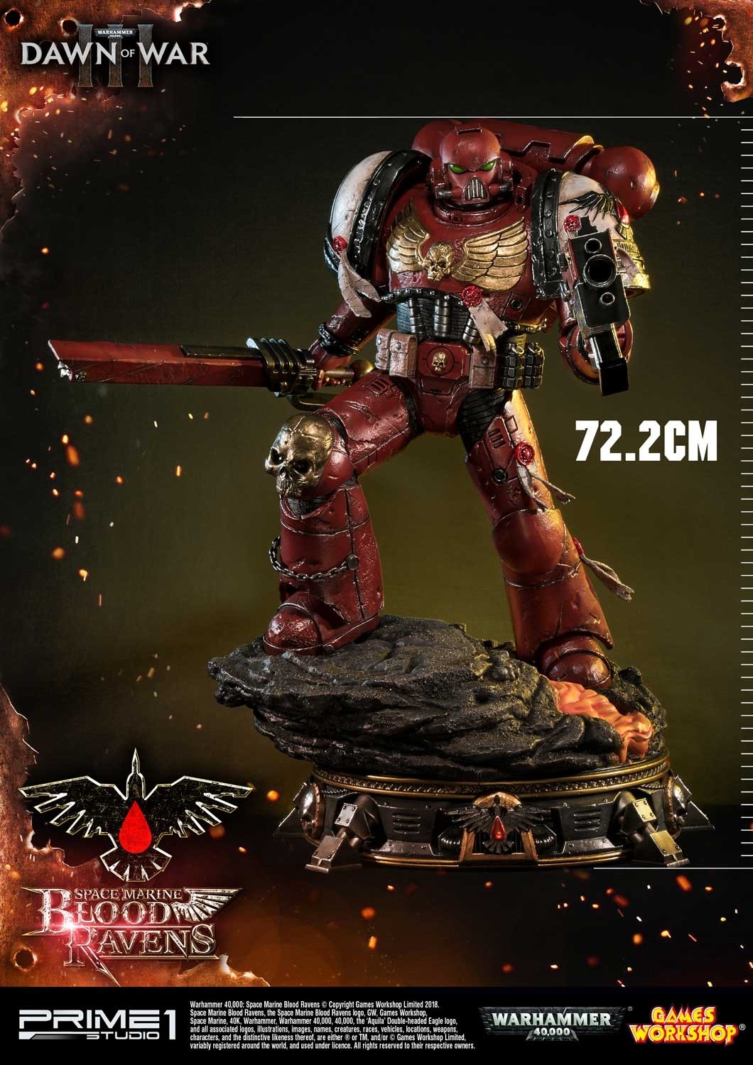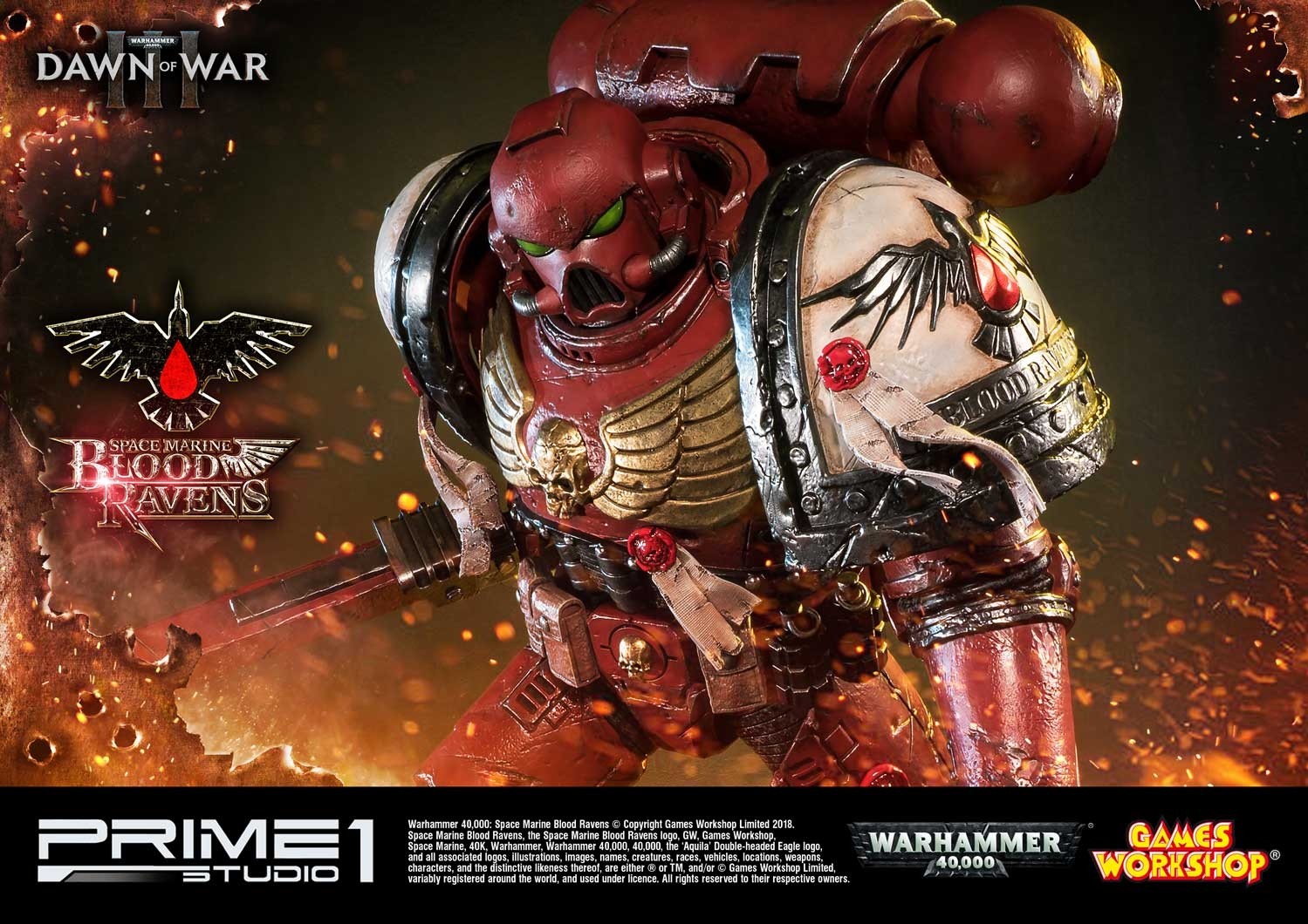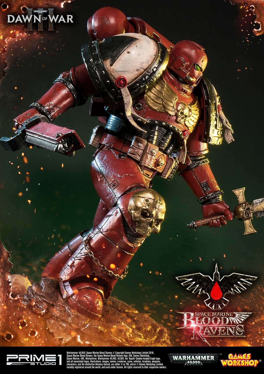 Dawn of War III is a new RTS with MOBA elements, released by Relic Entertainment and Sega in partnership with Games Workshop. Space Marine Blood Ravens statue stands approximately 28 inches tall and armed with a vast selection of iconic weaponry and clad in suits of intimidating power armor. This is a must-have for all Warhammer 40,000 Space Marine fans.