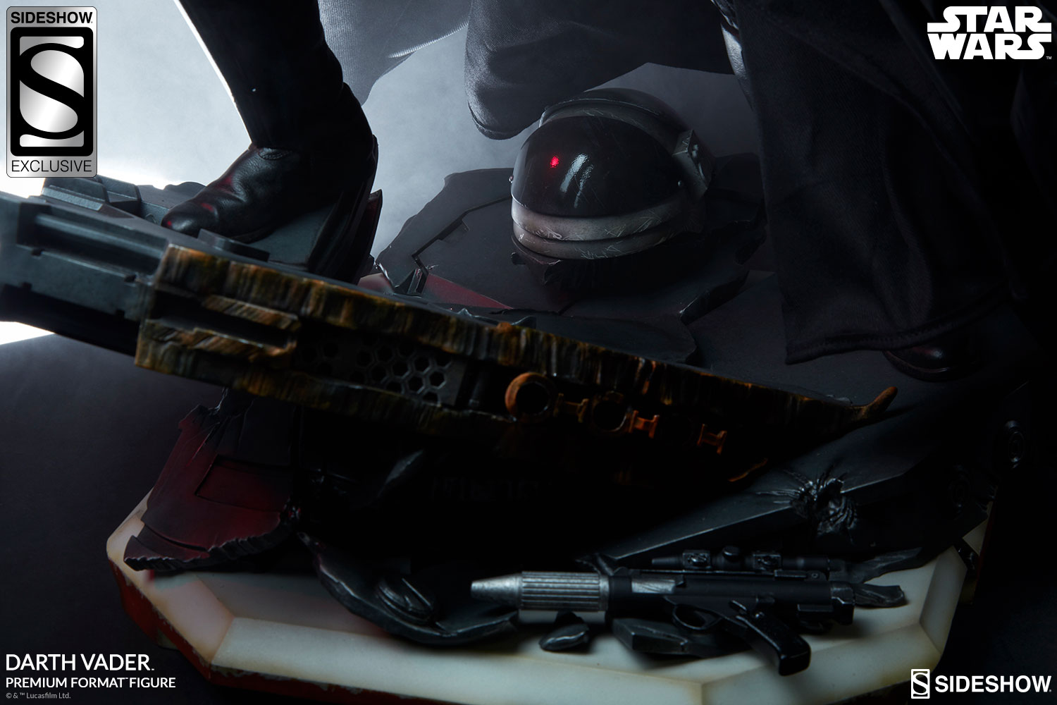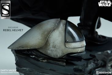 The Exclusive Edition of the Darth Vader Premium Format™ Figure includes a Rebel helmet and blaster that can be placed on the base, adding to the destruction and chaos caused by this dark lord of the Sith.