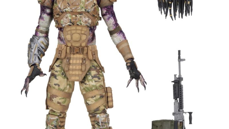NECA have revealed the official images and listing for their upcoming Predator movie Ultimate Emissary #1. He’s sporting a camo deco and comes with unmasked and masked heads. He’s due out in November 2018. Read on for the stock image and details!