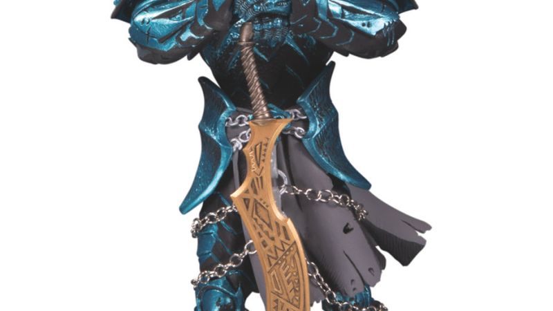 This 8.46″ tall polyresin statue is menacingly detailed based on the art in the miniseries. From the stunning, amplified Ares Bat-helmet that corrupted the Caped Crusader to the chains highlighting the blazing blue armor to the God Killer sword, it will command the room no matter where it stands.
