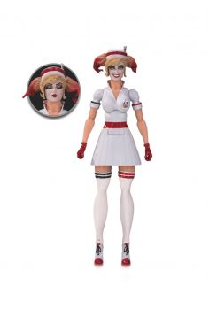 Harley is decked out in a retro nurse’s outfit, wonderfully reminiscent of the women helping the good fight of the Bombshells era. She comes with two interchangeable heads, so fans can present her smiling or with a kiss head, ready to re-create the iconic embrace.
