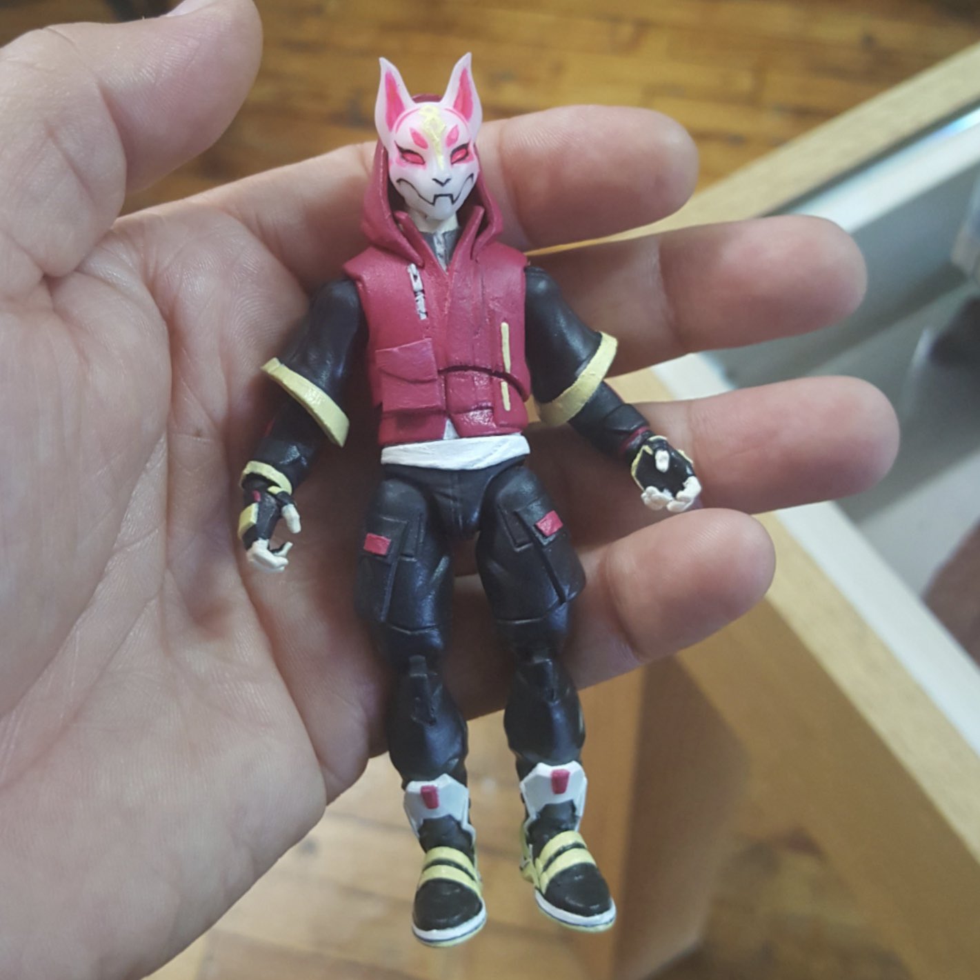 A new series of 4″ scale Fortnite action figures is being released by Jazwares. The first figures will hit retail stores on December 1st. Epic Games and Jazwares revealed the first figure; Drift. The figure includes a weapon, and a building piece which will likely combine with pieces from other figures in the line. In a behind the scenes image from Donald Mustard, the Creative Director of Epic Games, you can also get a glimpse of their Rust Lord figure.