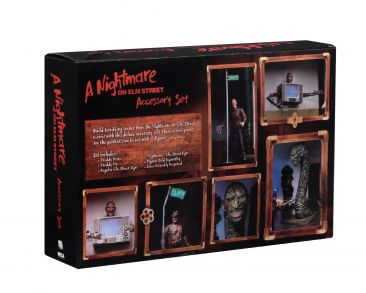 The new A Nightmare On Elm Street Accessory Pack for their 7″ scale Freddy Krueger figures is available now via the NECA eBay Store and the NECA Amazon Store. The includes a Freddy TV, a Freddy Worm and two Elm Street signs. It’s priced at $49.99 plus shipping. If you missed it, we had an early look at the Accessory Pack. Look for this to hit online retailers and stores by the end of the month.