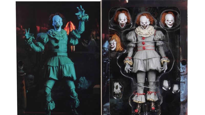 NECA has shared new final packaging images for their upcoming IT (2017) Ultimate Well House Pennywise 7″ Scale Figure. The figure will include four new head sculpts, a few new hands, and a fencepost that can be used to impale one of the head sculpts. This is due out some tiem this quarter. Read on for the new photos.