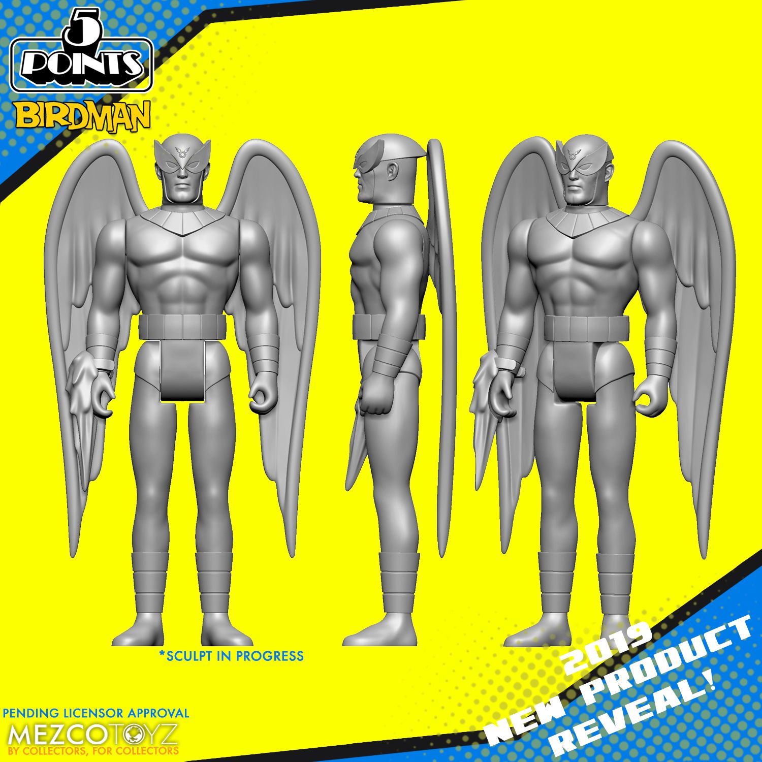 With their latest Toy Fair 2019 previews, Mezco Toyz has announced a new line of figures called 5 Points, which seems to be aimed at competing with ReAction style figures. As the name implies, these will be simplified figures with 5 points of articulation. While figure scale isn’t mentioned, it’s a safe bet these will be between 3.75″ and 4″ tall. The first two figures revealed are Birdman and Elias Kingston from the Scooby Doo Where Are You? cartoon. See the images after the jump.