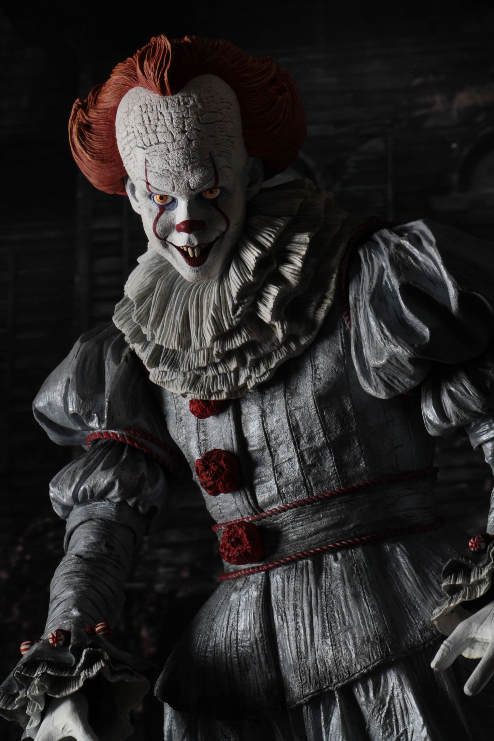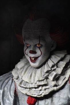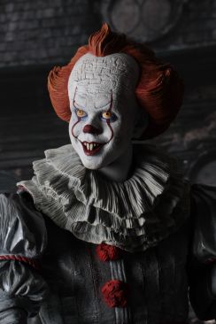 From the acclaimed 2017 horror film IT, drawn from the pages of Stephen King’s original novel, NECA presents the highly requested Pennywise as a 1/4 scale action figure! Based on Bill Skarsgård’s portrayal of the nightmare-inducing clown, this menacing 18” figure has been painstakingly detailed to be as accurate to Pennywise’s elaborate costume as possible. To recreate the most terrifying scenes from the movie, the fully articulated figure features interchangeable hands and signature red balloon.