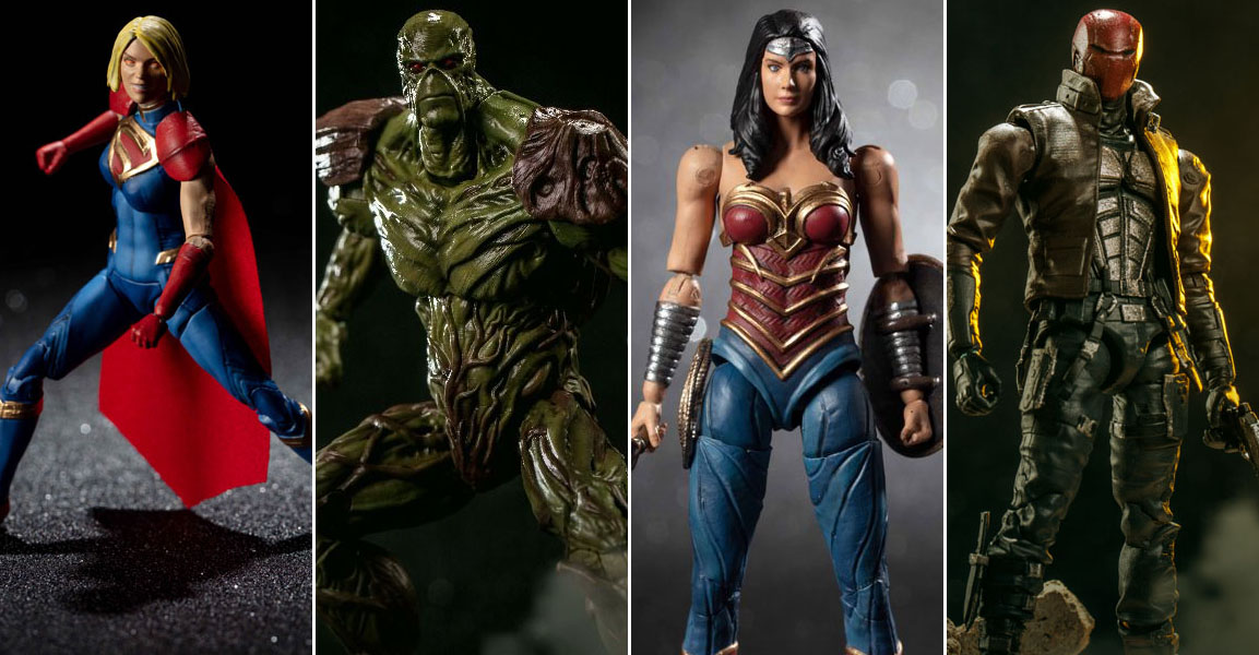 The figures are priced at $19.99 each. Swamp Thing and Red Hood are scheduled for release this month. Supergirl and Wonder Woman are set for a September release. Check out the photos after the jump.