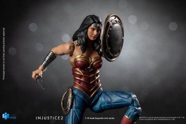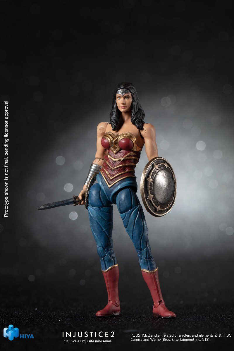 Hiya Toys has released new photos of their Wonder Woman, Swamp Thing, Red Hood, and Supergirl 3.75″ Scale Figures from Injustice 2. The new photos show off the fully painted versions of the Supergirl and Wonder Woman figures, and give us a better look at Swamp Thing and Red Hood. We also get a look at the included interchangeable parts and accessories. Wonder Woman will include a sword, a shield. Supergirl will include interchangeable heads. Swamp Thing includes interchangeable hands and a weapon. Red Hood includes two pistols and interchangeable hands. All of the figures include stands.