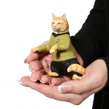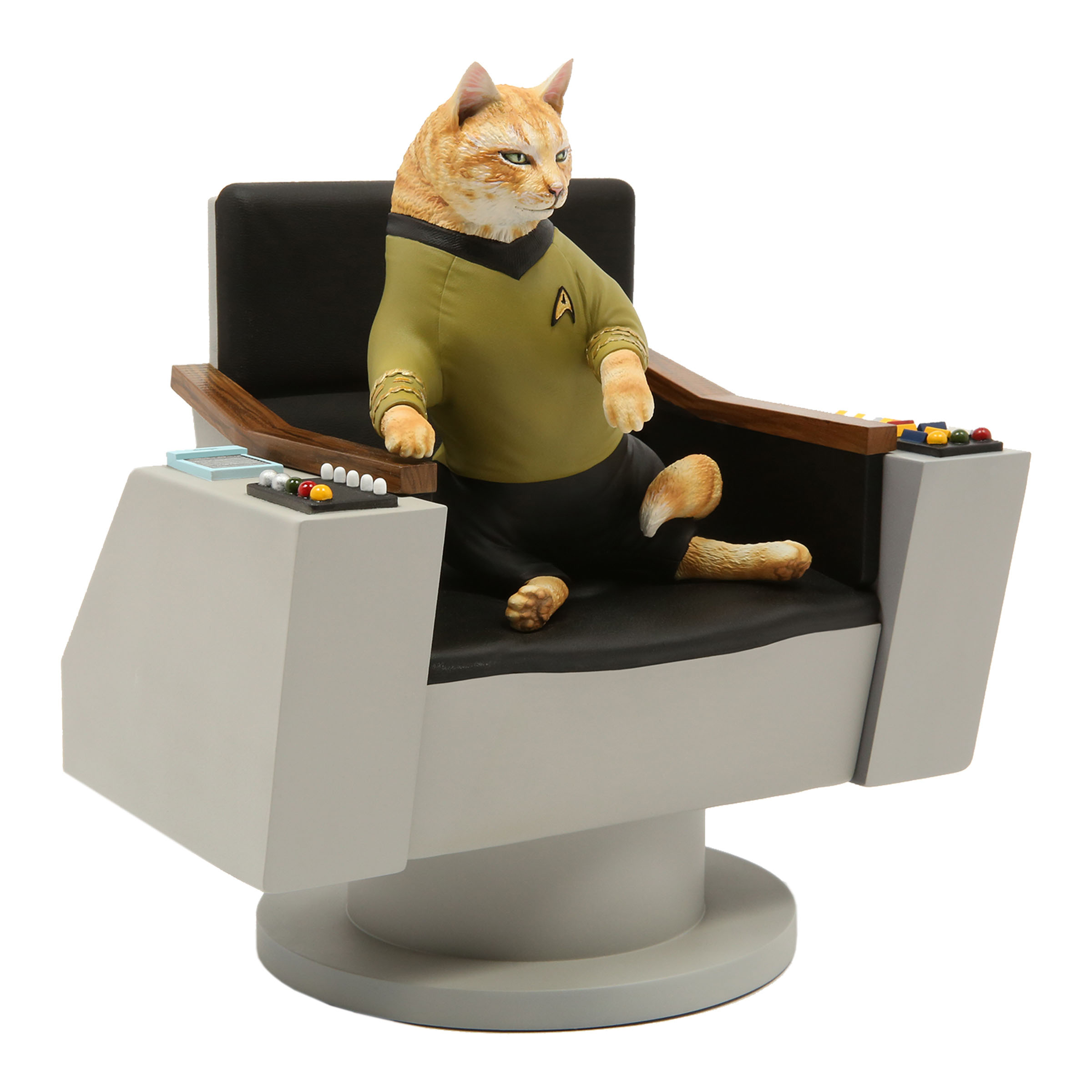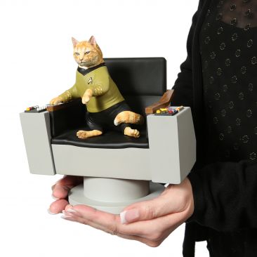 James T. Kirk Cat is the inaugural release in Chronicle Collectibles’ new line of the legendary original Star Trek crew, reimagined as cats. This adorable 1:9 scale James T. Kirk Cat comes with his official command chair so that he can direct the furry crew of the Enterprise.Just the right size for any office desk at 7.5 inches tall, you just know this is going to be the right conversation starter at work that combines your love of Star Trek and cats.