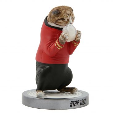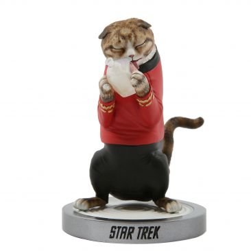 Measuring 5” tall, he’ll fit perfectly in your collection or on your desk back at the office. Scotty Cat comes ready for duty in his bright red engineering tunic and stands atop a transporter-inspired base with the Star Trek logo boldly featured on the front.