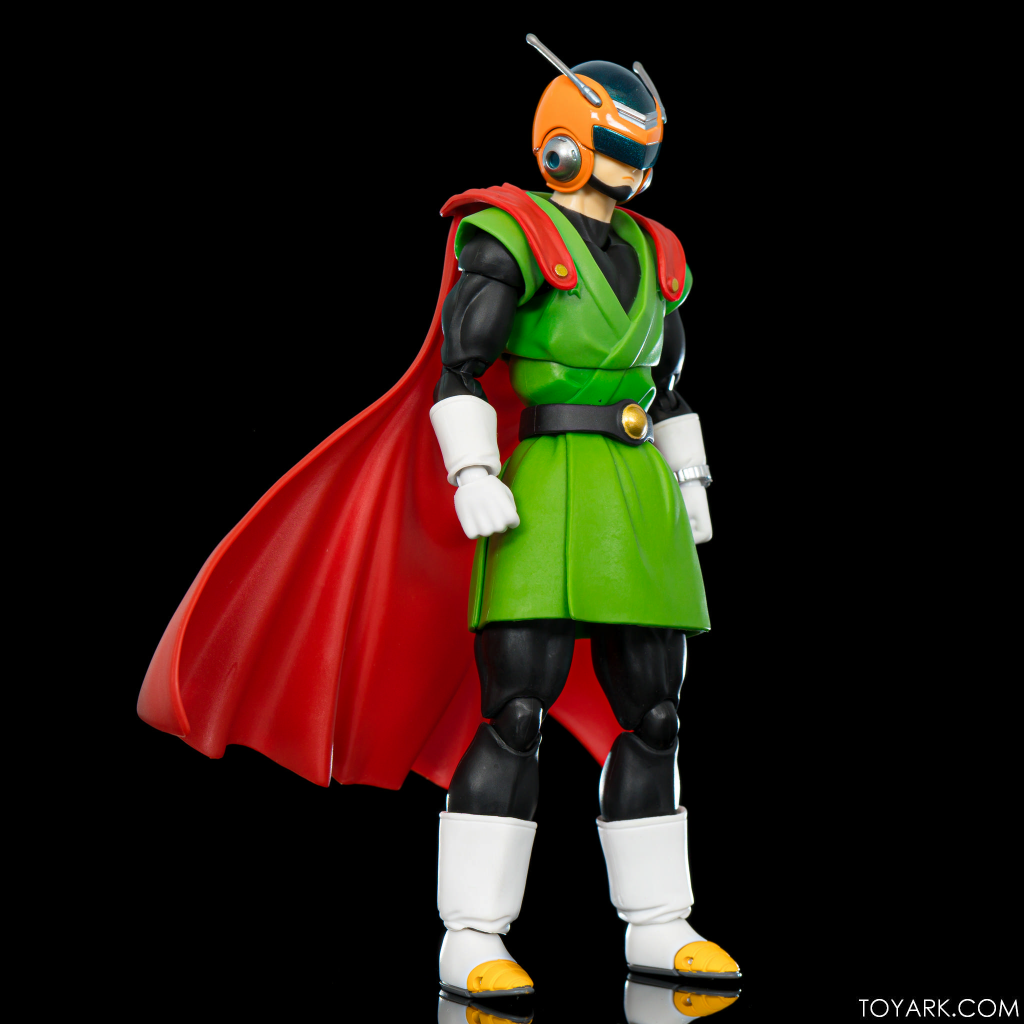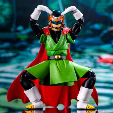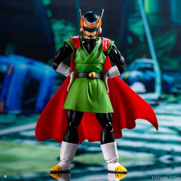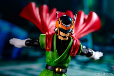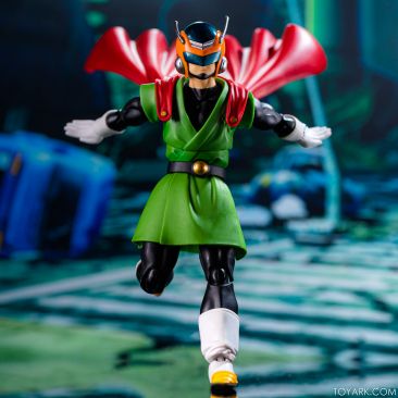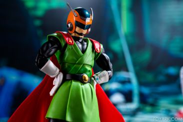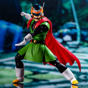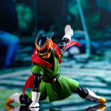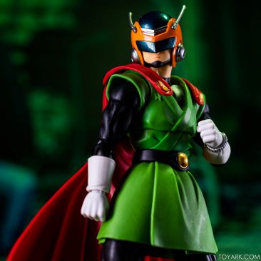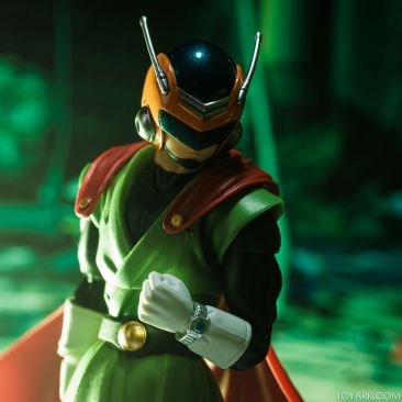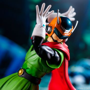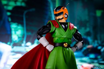 Time for another catch up gallery for the S.H. Figuarts Dragon Ball line. Today we are taking a look at the Great Saiyaman, aka (25 year spoiler alert) Gohan. This is Gohan’s super hero alter ego that he was using at the start of the Buu saga so he could help the people fight crime and still have a normal life. It was meant to be ridiculous and it was, but fans can’t get enough of him. He comes packed with his cape, helmeted head, doo-rag and glasses head, standard hair head, Super Saiyan hair head, forearms with and without the costume watch, 5 sets of hands, back peg for when he’s not using the cape, and an extra set of helmet antennae. As you can see, it’s well accessorized. Everything is sharp, with the Super Saiyan head really standing out. The standard hair head sculpt is a bit off, and the cape tech is wonky – the flaps never align right over the shoulders and the hard plastic cape falls out of the peg easily when posing. That being said, he’s still a solid release and worth picking up. The Buu Saga is filling out nice in the S.H. Figuarts line.