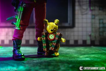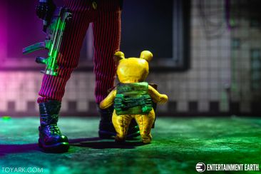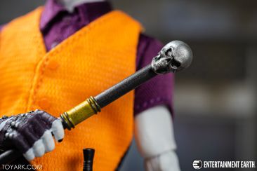 One more round before I head out to SDCC!  Today we are taking a look at a recent One:12 Collective drop – The Joker – Crown Prince of Crime edition.  This is a MezcoToyz original take on the Joker, showing him in a younger form with modern clothing and gear.  He comes packed with 2 knives, machine gun and clip, bullet effects part, teddy bear bomb, cane, extra head, 5 extra hands and a display base.  The clothes are tightly tailored with striped purple pants, suspenders and an orange vest.  All in all it’s a really sharp piece.  The sculpt on both heads are expressive and the rich paint is well done.  The clothing is form fitting and lays right, it doesn’t feel like puffy doll clothes like some others have.  The accessory line up is just right in my opinion.  Nothing too crazy but not weak either.  Bottom line, it’s a great modern take on the Joker and I’m glad he’s in the rotation.