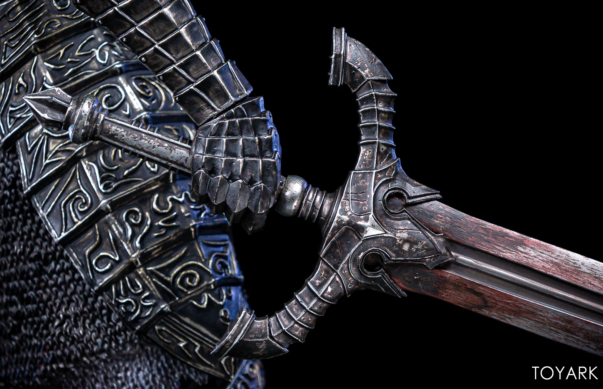 Like just about everything Gecco does, the Black Knight Statue turned out to be a fantastic collectible. The sculpt, which was supervised by Dark Souls developer FromSoftware, is just as good as I expected. The armor features excellent detailing, with differing textures based on the materials that are being represented. While large armor plating has a fine, brush metal feel to it, areas like the chain mail have a more pronounced texture that does a great job of evoking movable armor. The statue features a mix of ABS and PVC plastics, which are both fairly hard plastics that allow those finer sculpted details to come through. Some minor assembly is required, such as choosing the weapon to display the statue with. There are a few different hands included, each with a proper grip for certain weapons. Weapons separate at different spots, allowing for them to slide into the gripped hand without any trouble.