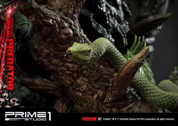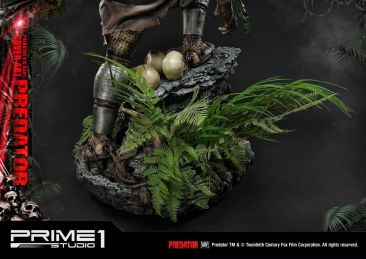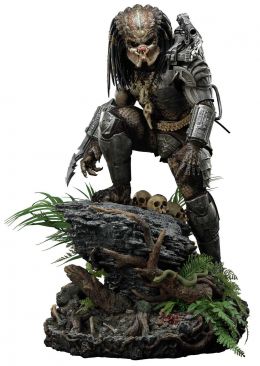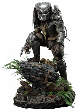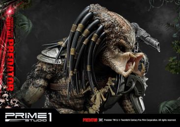 An extraterrestrial species characterized by their hunting of Xenomorphs/Aliens for faith and honor using a combination of highly advanced technology are the Yautja, also widely known as Predators. Prime 1 Studio is excited to present the third piece from the series: PMDHPR-03DX: Big Game Cover Art Predator Statue Deluxe version inspired by a comic cover art by Dark Horse!