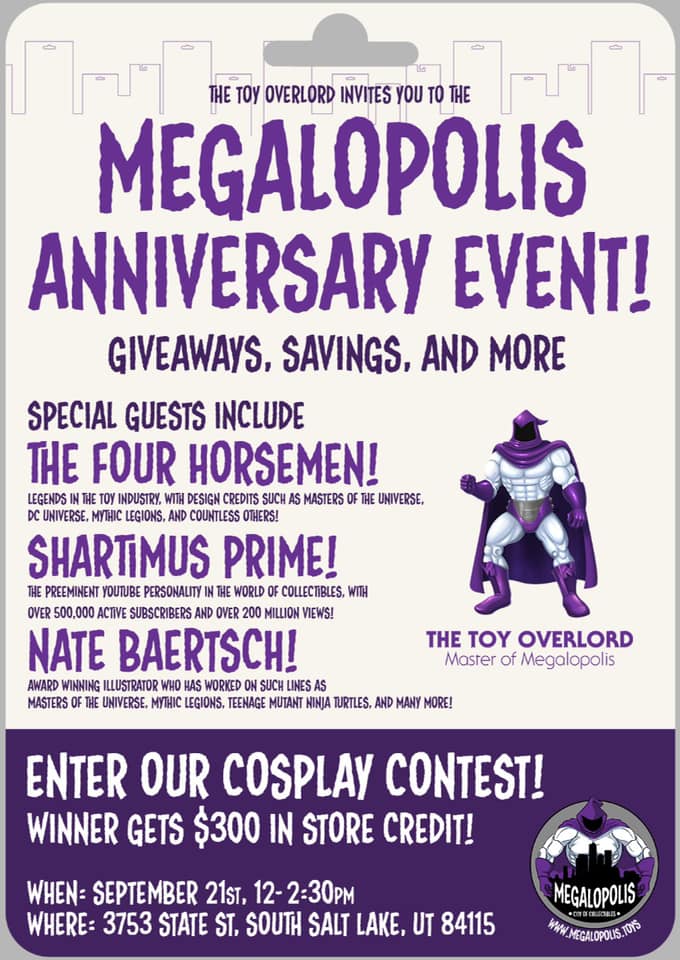 Site sponsor Megalopolis Toys will be holding an anniversary event at their physical store in Utah this coming weekend. The Four Horsemen will be in attendance with new Mythic Legions to show and sell, Megalopolis will be handling the warehousing and shipping of future 4H direct sales. If you are in the area make sure to stop through and check them out!