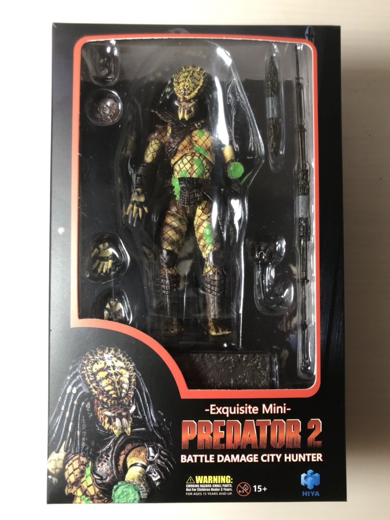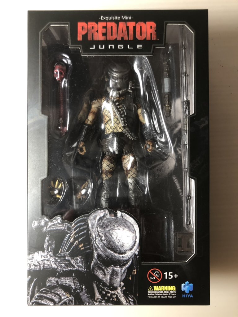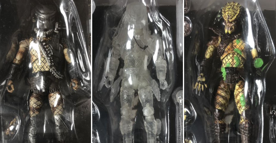 Hiya Toys has released final packaging photos for three upcoming Predator figures. The figures include the Jungle Hunter Predator from the original film, as well as Battle Damaged and Invisible versions of the City Hunter Predator from the second film. The figures stand roughly 4.5″ tall, and include figure stands and character specific accessories. Each of the figures are scheduled for release in the fourth quarter of the year. They are priced at $19.99 each. Check out the photos after the jump.