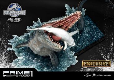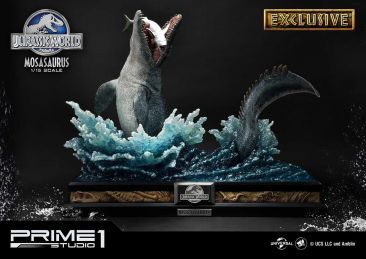Prime 1 Studio continues their line of collectibles based on the Jurassic Park franchise with a new statue from Jurassic World. They have opened up pre-orders for their Jurassic World – Mosasaurus 1/15 Scale Statue. The statue stands about 26″ tall, and over 34″ long. It features the Mosasaurus leaping from the water as it tries to feed. It includes a specialized statue base, featuring splashing water and the film’s logo. Prime 1 is also offering an Exclusive Edition, which includes a scaled shark statue that can be placed inside the Mosasaurus’ mouth.