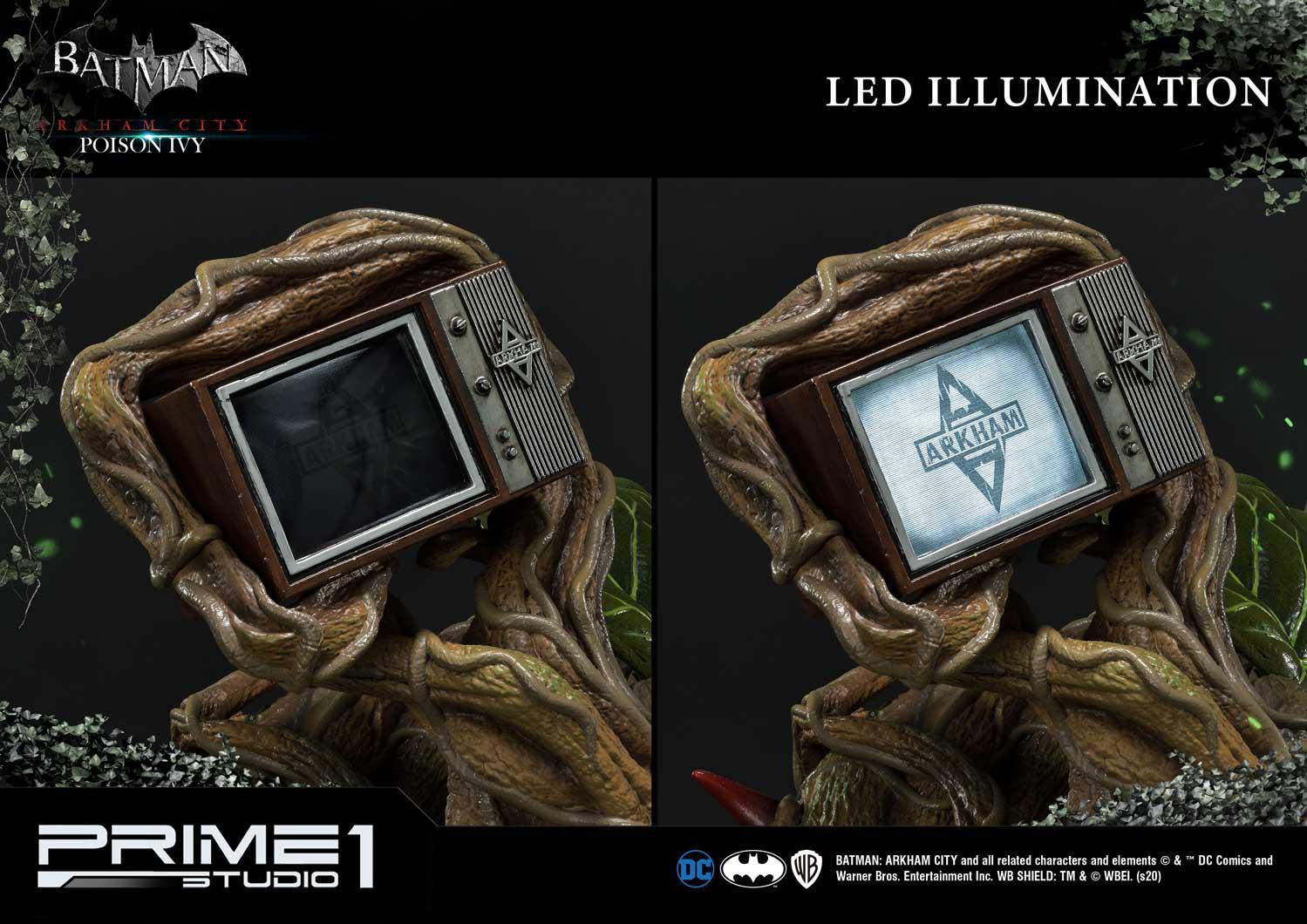 Prime 1 Studio has opened up pre-orders for a new Batman: Arkham City – Poison Ivy 1/3 Scale Statue. The statue will stand at 32″ tall, with a themed base. Poison Ivy is based on her appearance in the 2001 Arkham City video game, and features an Arkham Asylum jacket, and is surrounded by the plants that help protect her. There is a light up function on the TV that is part of the display base. Poison Ivy also includes two interchangeable portraits. Prime 1 Studio is also offering an Exclusive Edition, which includes a third swap out portrait.