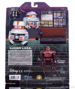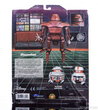 The figures come packed in standard DST “Select” style packaging. The back of each package has a brief summary of the film, and details on each figure. Maximilian includes a figure stand, swap out heads, energy effects, and interchangeable weapons. V.I.N.CENT and B.OB. include articulated figure stands. V.I.N.CENT includes multiple interchangeable robot arms and has, syringes, and retracted hovering orbs (his legs). Each pack also includes a part to build a diorama backdrop, which is based in the interior of the USS Cygnus.