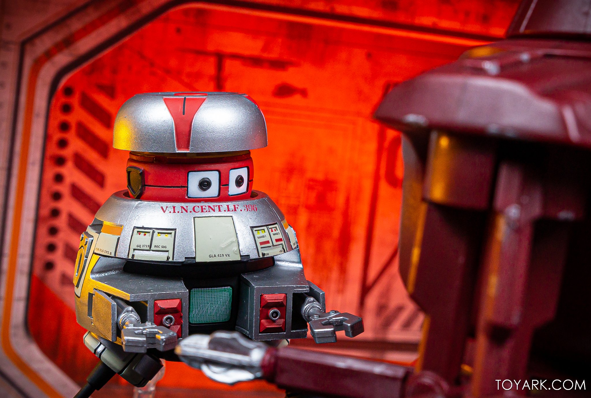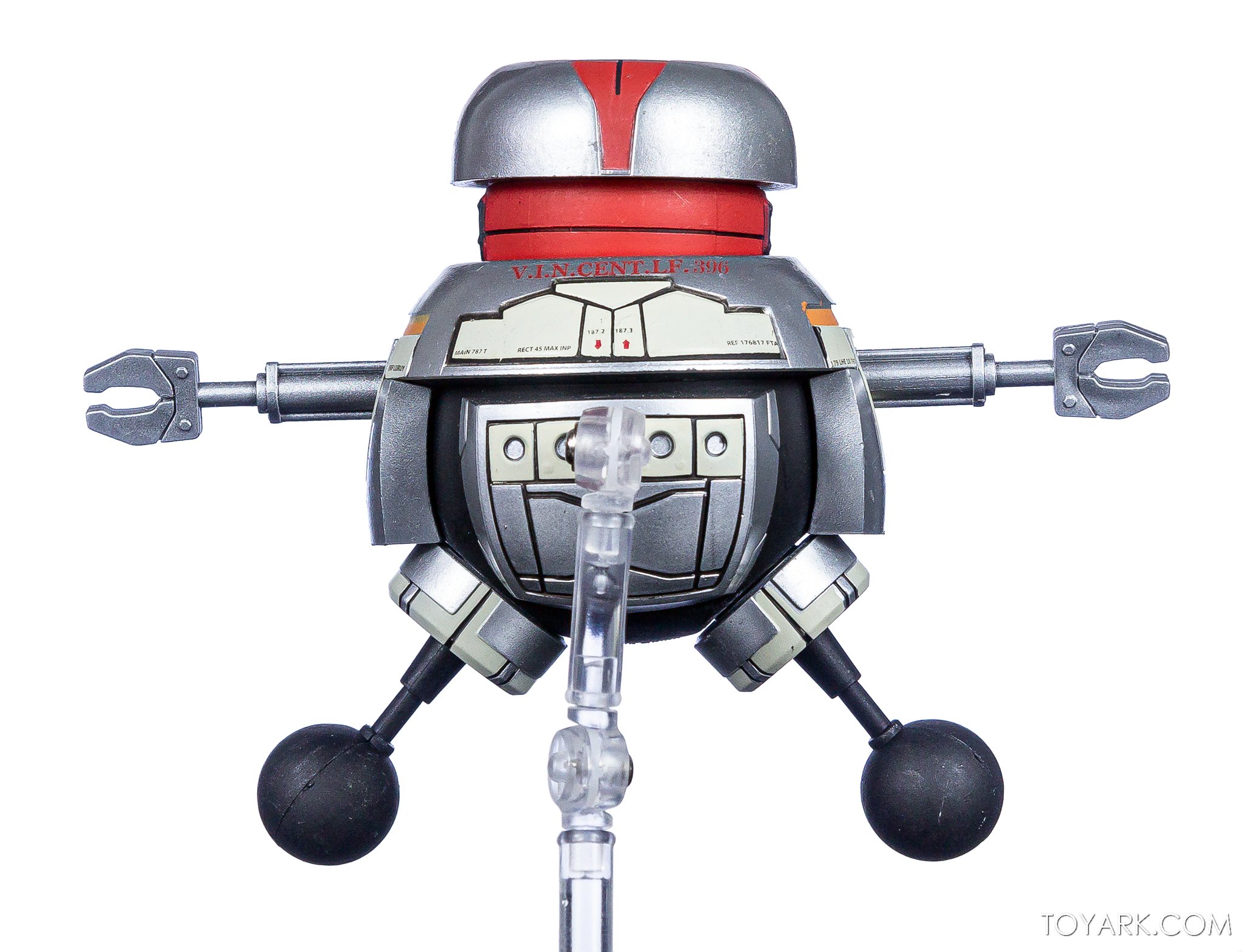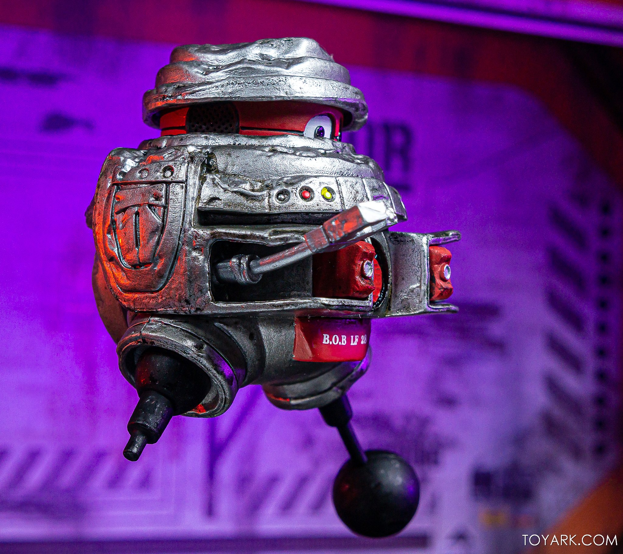 Packing both V.I.N.CENT and B.OB. together was a good move. V.I.N.CENT on its own, even with all of the accessories, would be hard to justify at full price. B.OB. doesn’t really require any accessories, outside of the figure stand. Both have really strong sculpts, and pretty much look like tiny movie props. Paint work is again outstanding here. The included figure stands are articulated, and plug into the backs of the figures. Fro the shoot, I removed one of the middle segments of their stands, just for stability and keeping them a bit lower to the flooring. You’ll need a small screwdriver to tighten the hinges. V.I.N.CENT has a retractable head, and B.O.B. has a semi-retractable head. V.I.N.CENT’s arms pop off easily, and it has small claws that fill in that gaps on the side. The claws on the front are hidden behind a hinged flaps, and those can be swapped out with longer arms. The red rectangles on the front can be removed, and the extended syringes can snap on there. The extended hovering orbs can also be removed, and replaced with retracted legs.