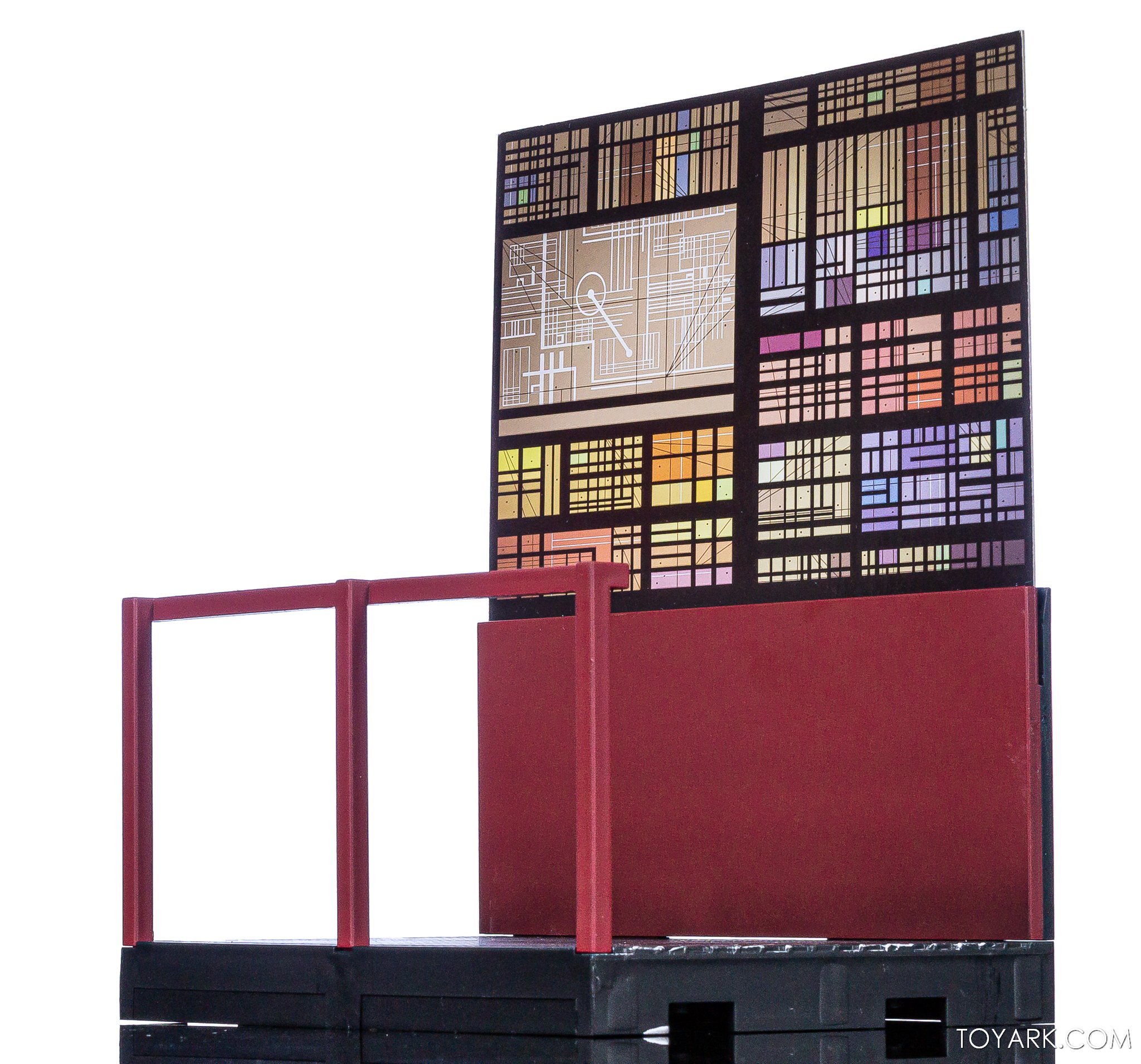 Maximilian is huge, standing over 8″ tall and looks really imposing. It has some articulation, including each of his arms, a rotating neck, a rotating waist, and movable legs. Maximilian’s sculpt is outstanding, and looks really close to the movie version. The second head is based on his merging with Reindhardt at the end of the film. While the paint on the interior face isn’t the best, it works well for what it represents. Maximilian’s front arms feature swap out weapons, and they change out with no trouble, as do the swappable head sculpts. The stand is actually pretty massive, but holds the figure well. The diorama backdrop included seems to indicate that DST is at least planning on more Black Hole releases. There are connector pieces included that attach to the underside of the diorama flooring.