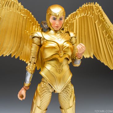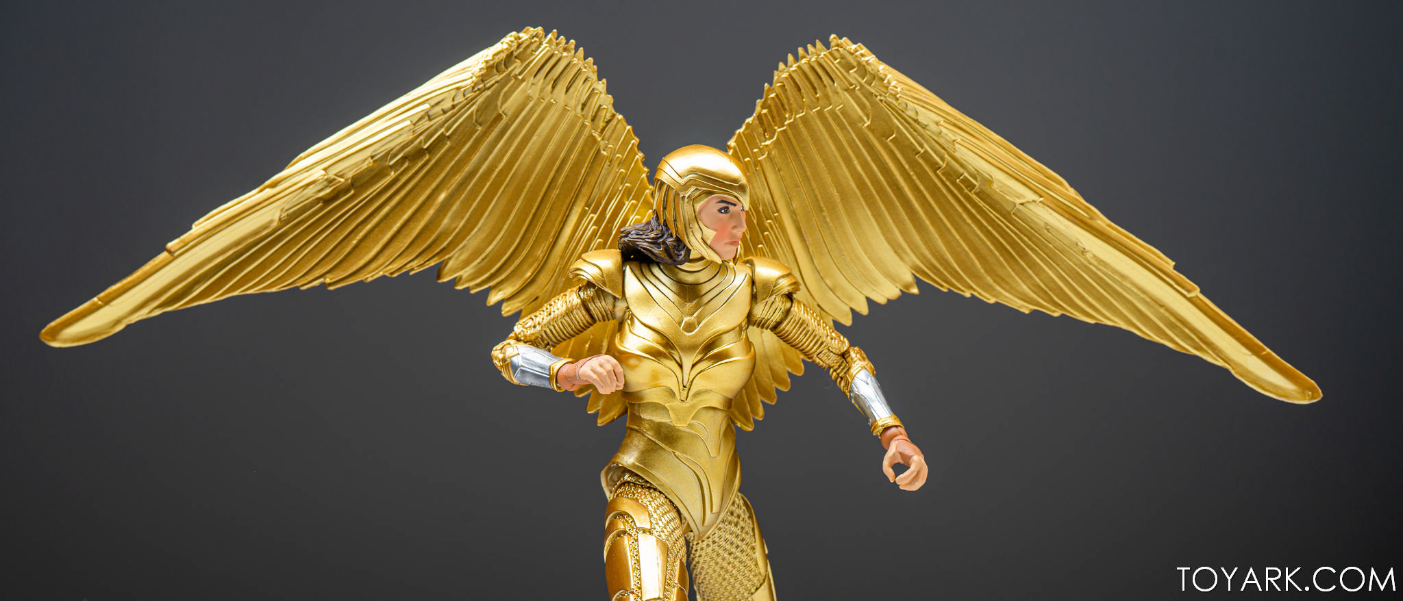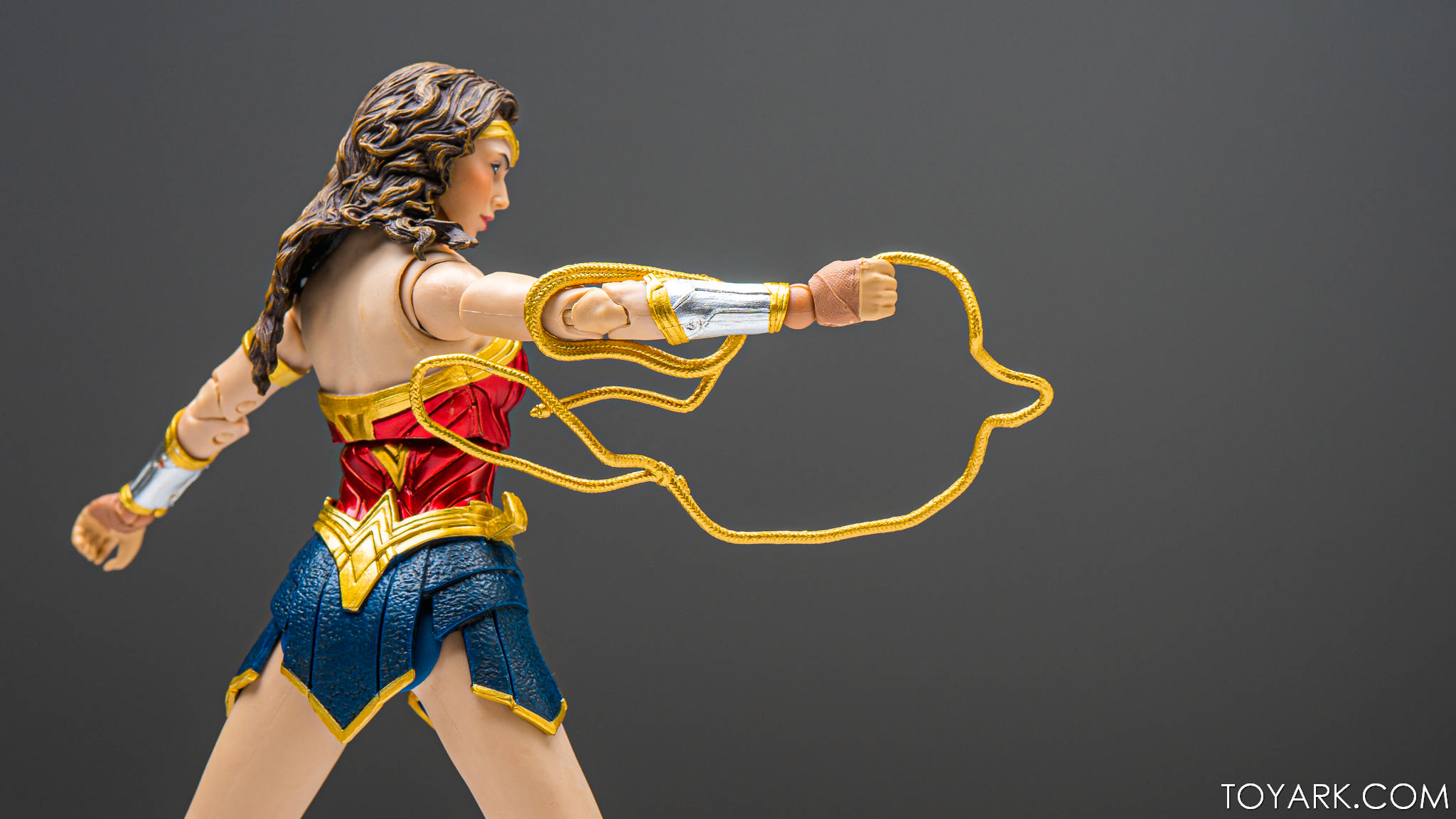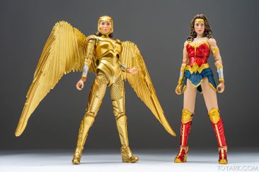 We get a standard Wonder Woman, in traditional gear, and a Golden Armor version. Both looks have been seen in the trailers. The Golden Armor one is sharp, featuring detachable wings and a flight stand. Standard Diana comes with two lassos, one extended and one wrapped up for her belt.